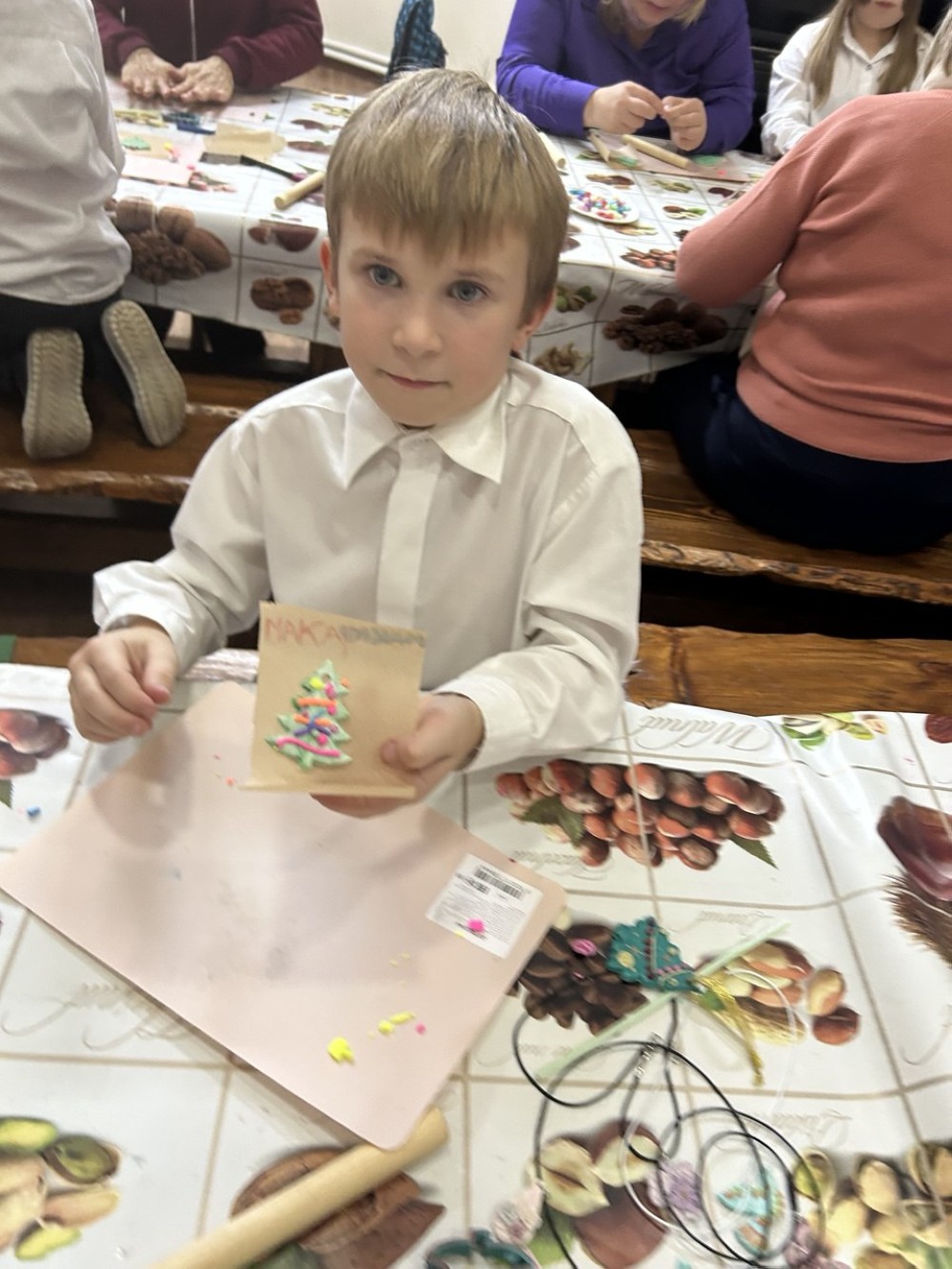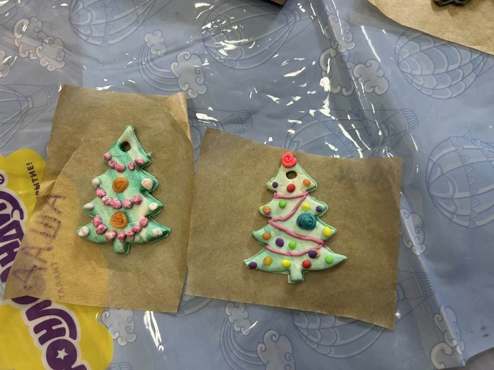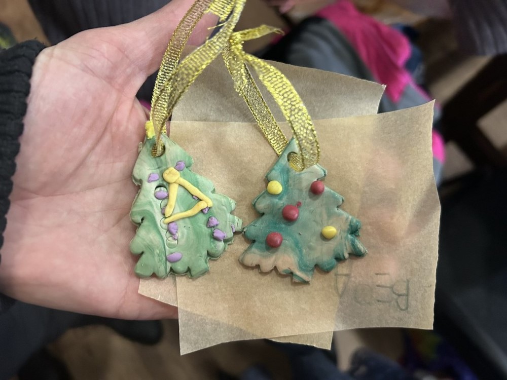 После выступления дети с мамами приняли участие в мастер-классе - создали из полимерной глины фигурки ёлочек и украсили их.