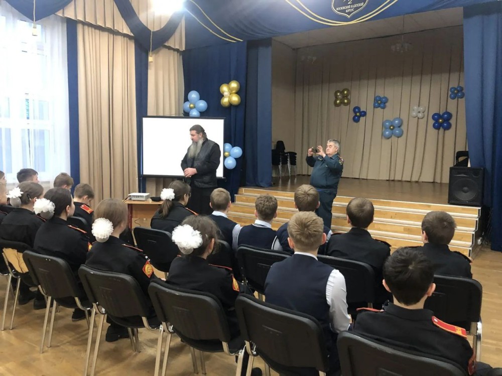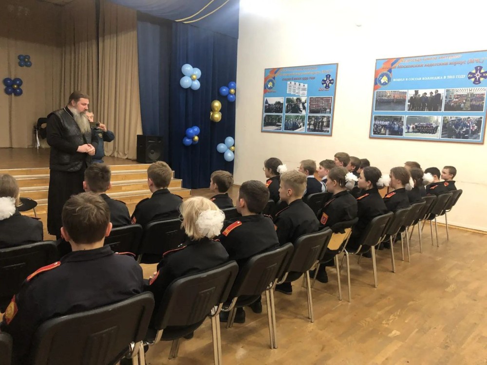 Настоятель храма Священномученика Ермогена в Зюзине провел беседу с учащимися Кадетской школе МЧС Первого Московского кадетского корпуса