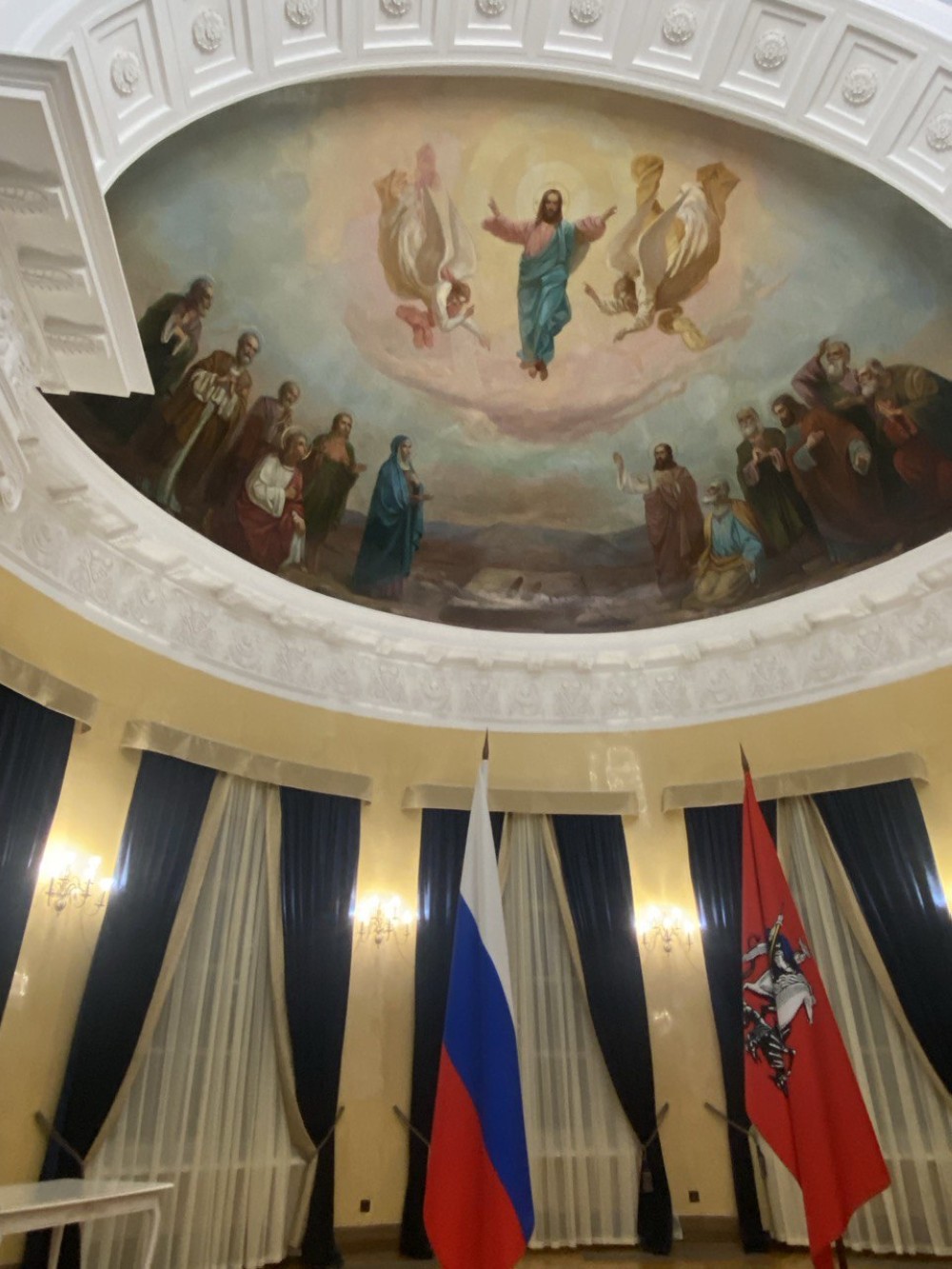 В советский период церковь была упразднена, но от нее осталась подкупольная роспись, посвященная Вознесению Христову. Гости Мосгордумы увидели исторические интерьеры и узнали интересные факты о работе городских властей в дореволюционное, советское и современное время.