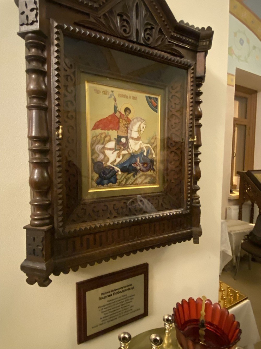 Экскурсанты посетили храм святого благоверного великого князя Александра Невского, расположенный на территории Думы, поклонились его святыням, в том числе образу Великомученика и Победоносца Георгия, который побывал на орбите Земли.