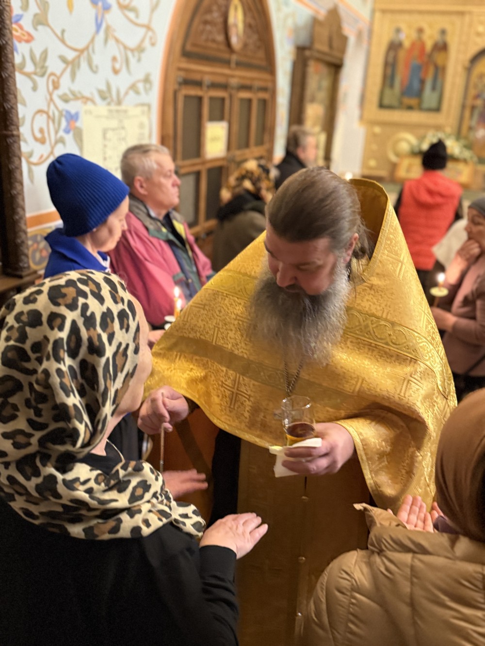 По окончании Таинства иерей Иоанн поздравил соборовавшихся прихожан, а в словах проповеди сказал о том, что Таинство Соборования имеет благодатную силу врачевать не только телесные болезни, но и душевные недуги, но не заменяет собой других Таинств - Таинство Исповеди и Причастия.