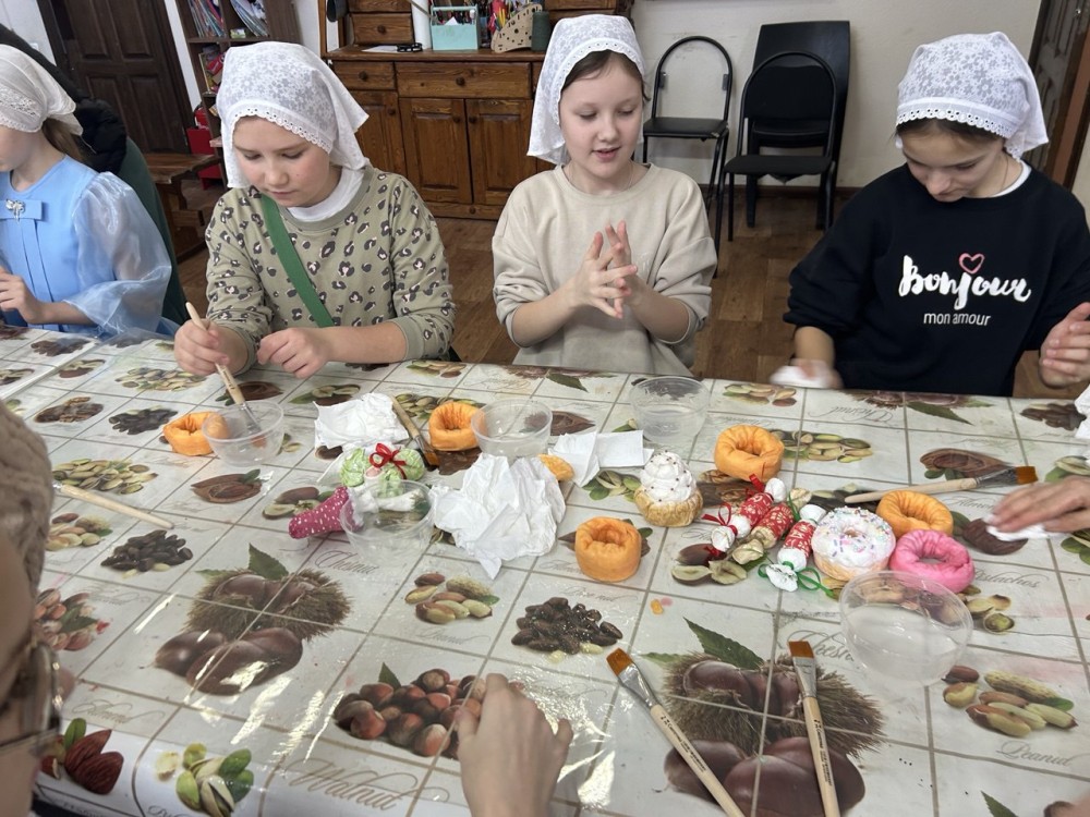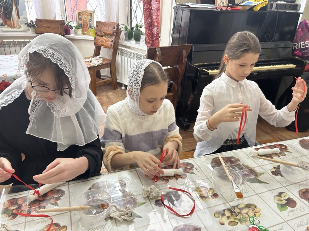Учащиеся Воскресной школы на творческих занятиях изготовили игрушки и поделки для благотворительной ярмарки, а также в подарок для своих близких.