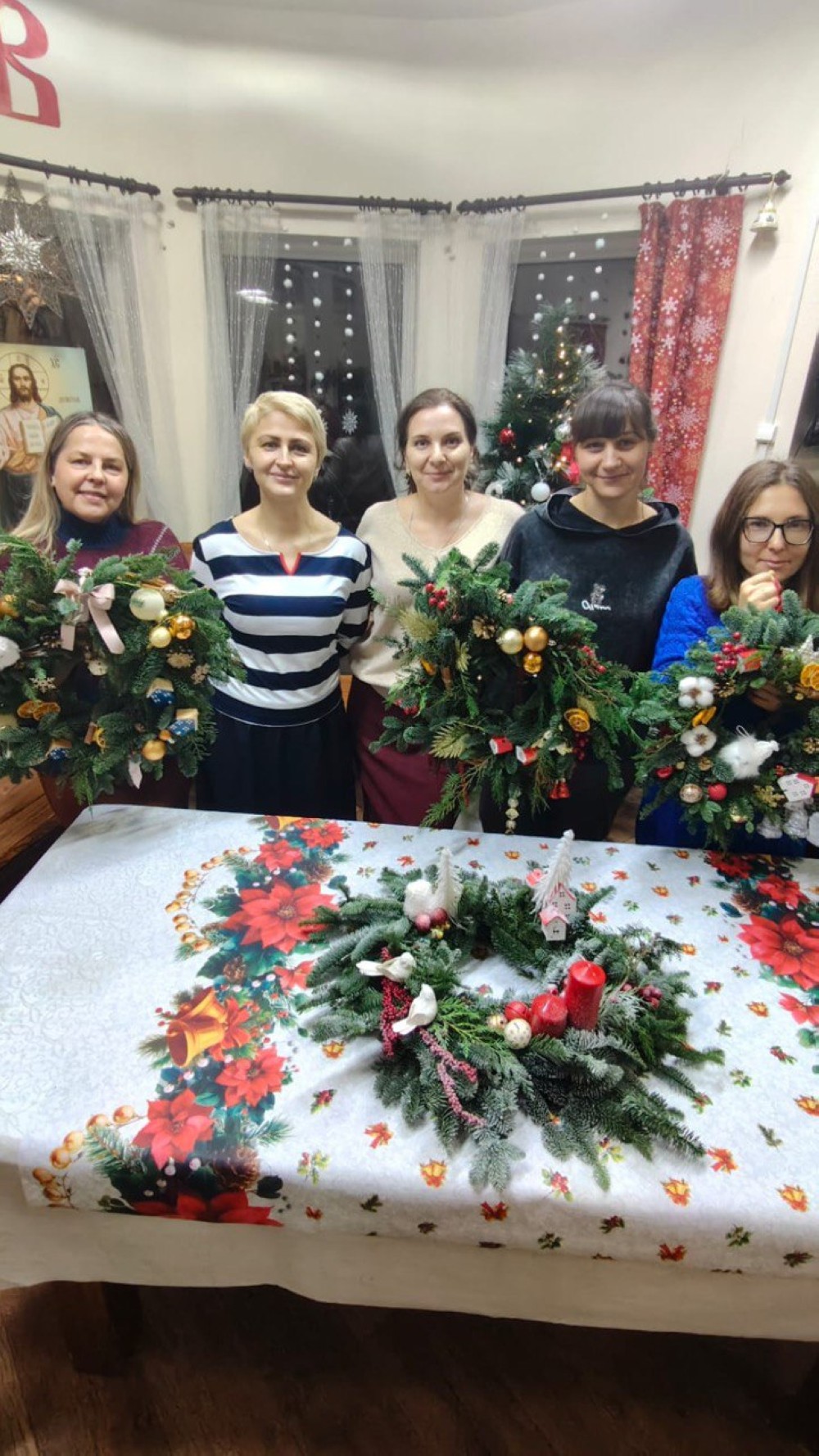 На творческих мастер классах под руководством педагога и флориста Дарьи Бельских родители с детьми и взрослые изготовили свои ёлочные композиции для украшения интерьера.