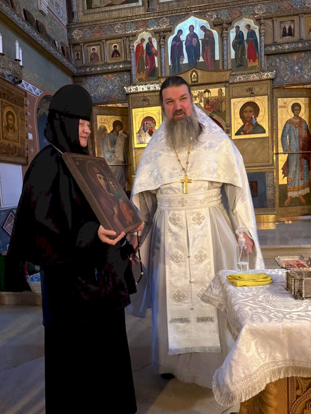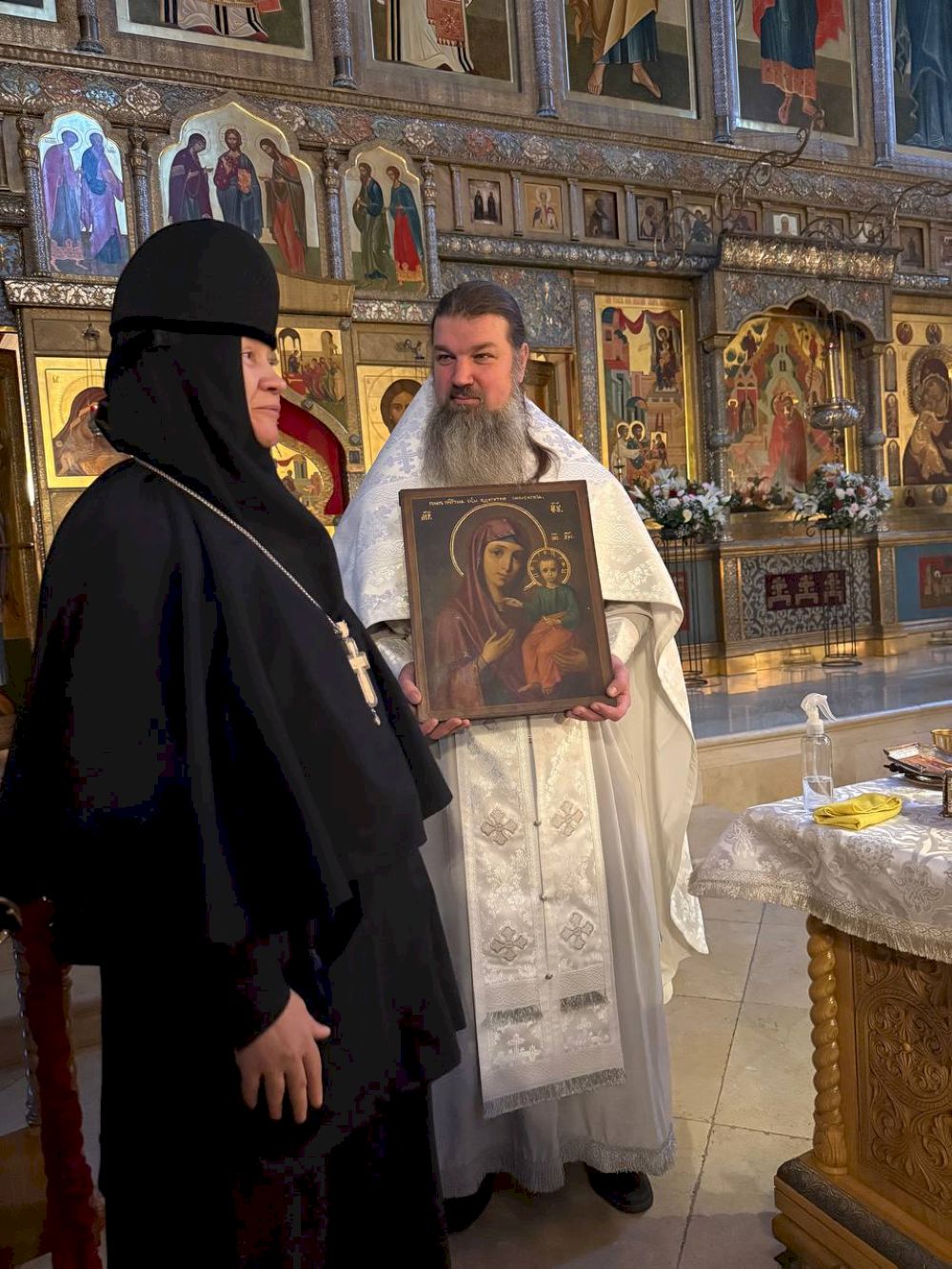 По окончании Богослужений иерей Иоанн преподнес в дар монастырю икону Божией Матери Смоленская.