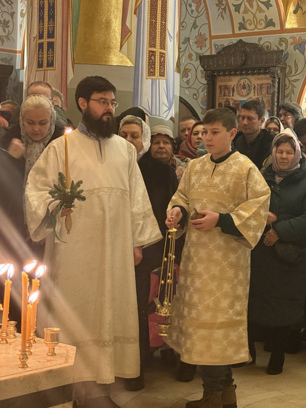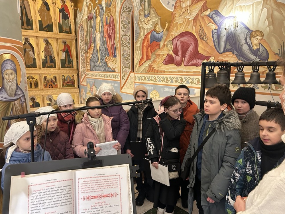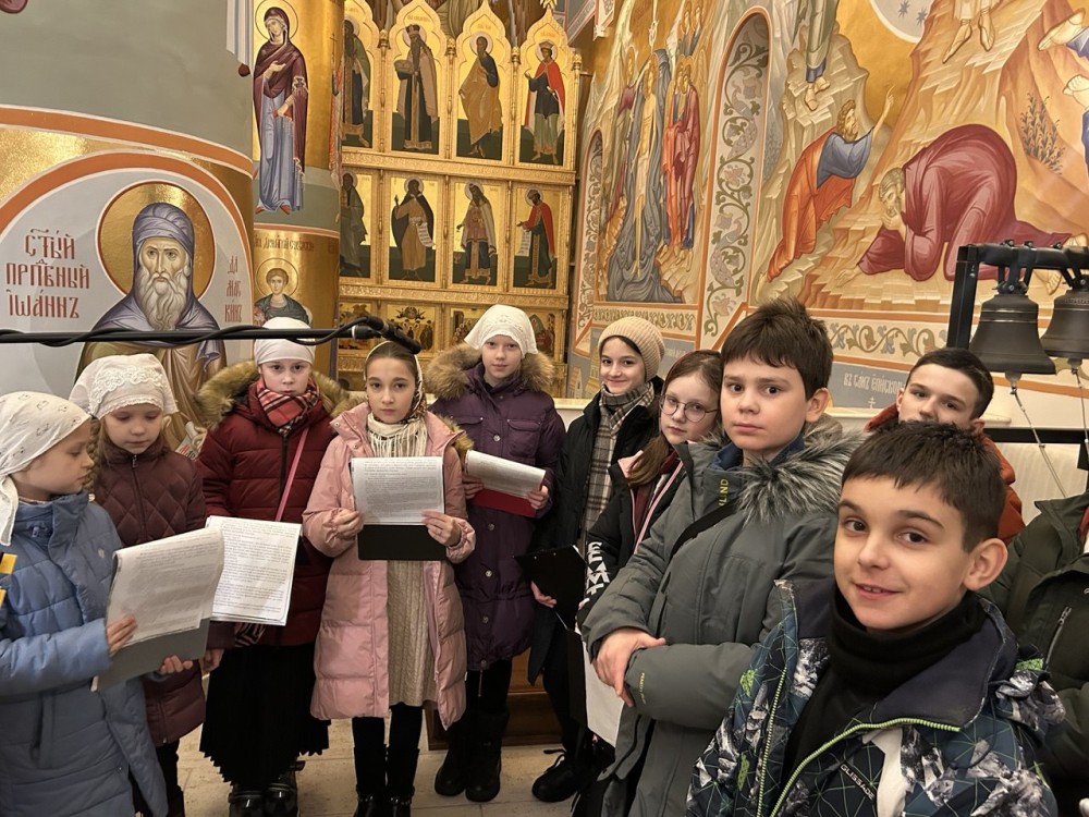Ночную Литургию украсили праздничные песнопения, которые исполнил детский хор Воскресной школы "Исток" под руководством регента Куликовой Виктории.