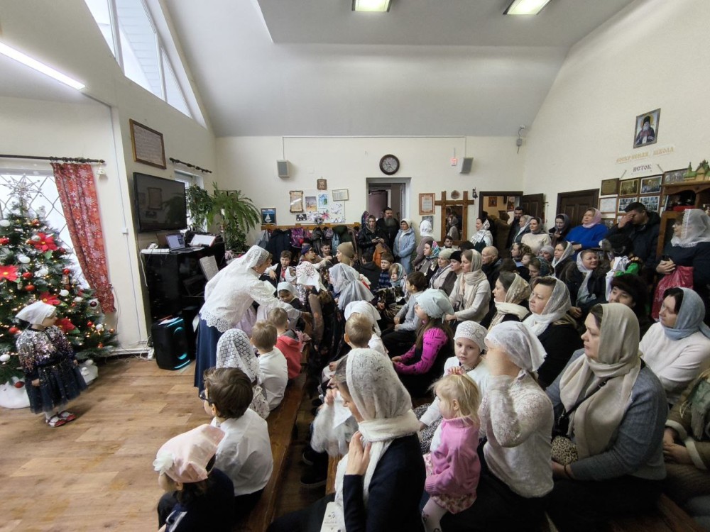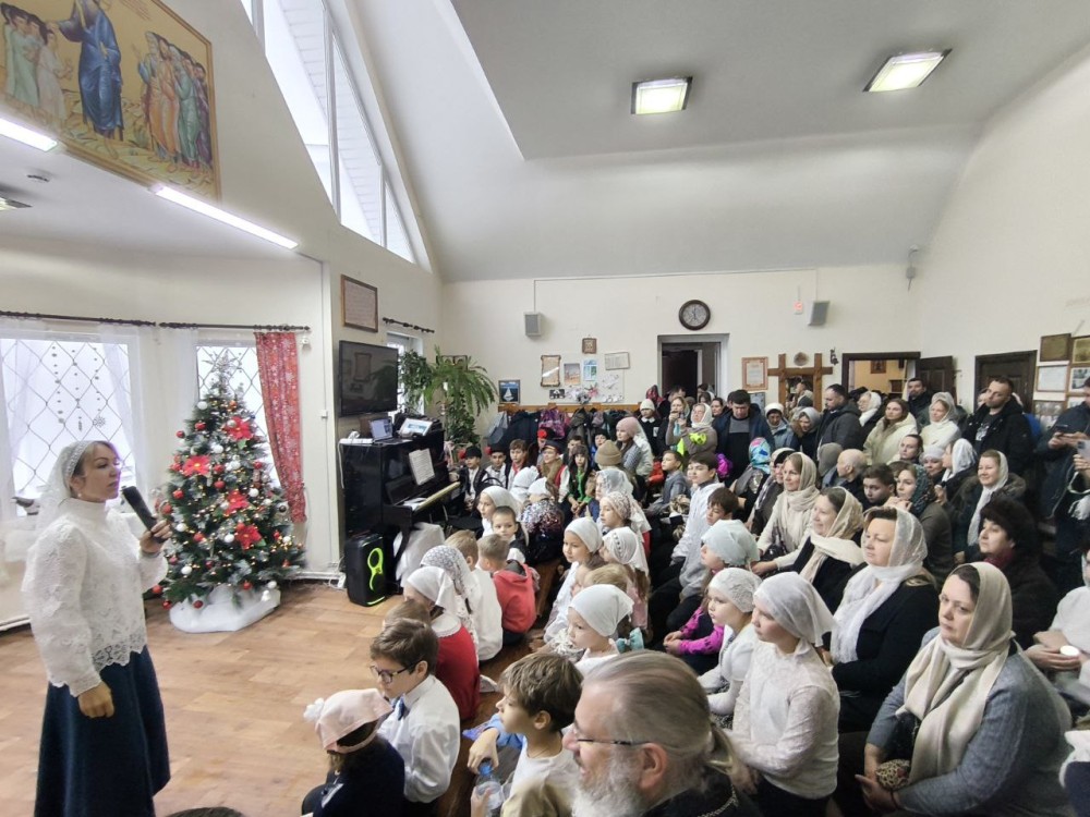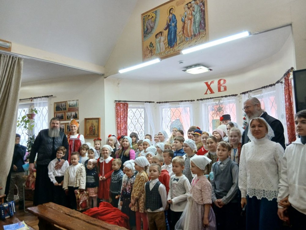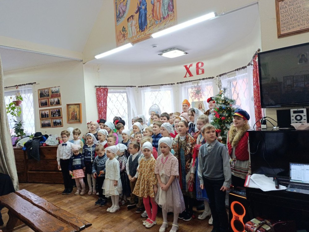 По окончании поздней литургии дети и родители собрались на праздник в Воскресной школе. Начался праздник с пения тропаря Рождества Христова детьми и взрослыми, собравшимися на концерт.