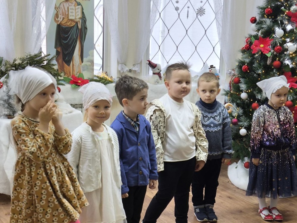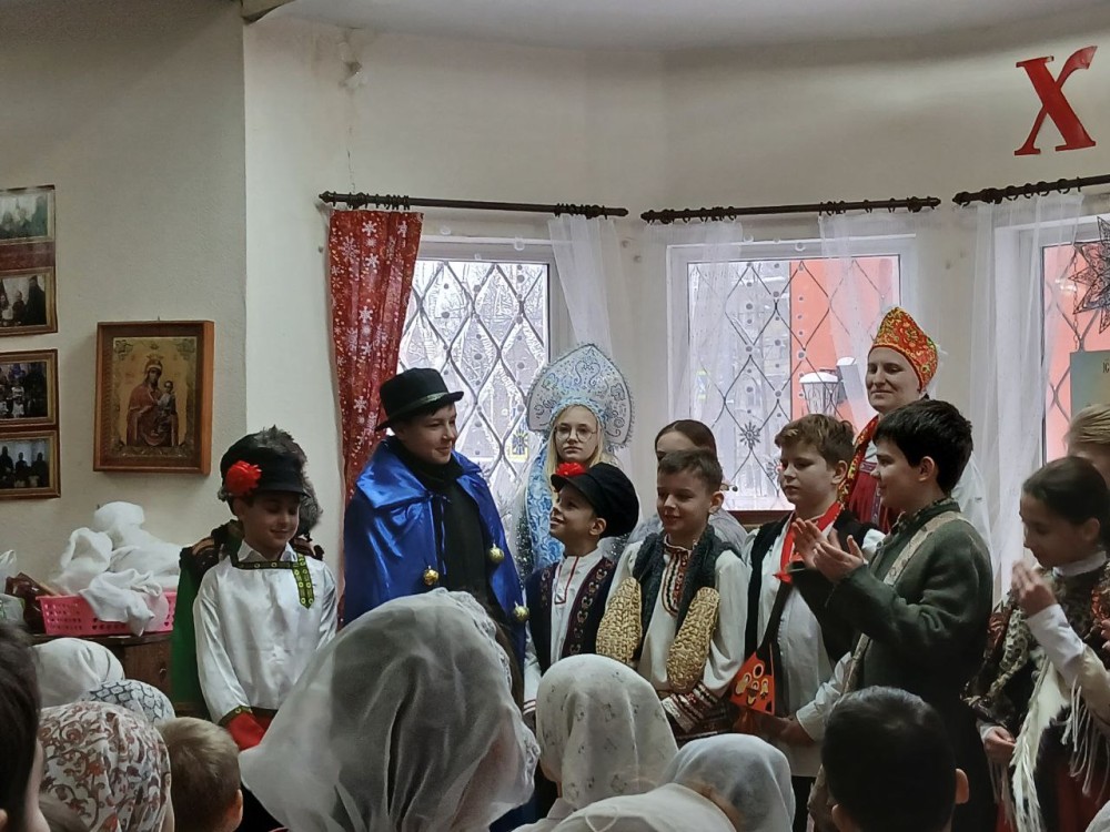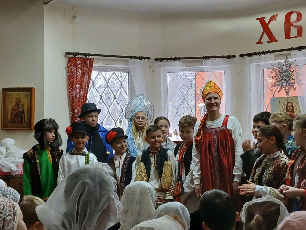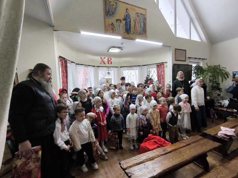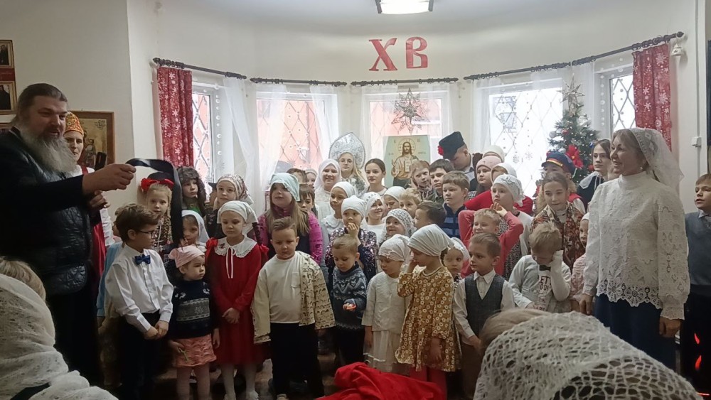 По окончании поздней литургии дети и родители собрались на праздник в Воскресной школе. Начался праздник с пения тропаря Рождества Христова детьми и взрослыми, собравшимися на концерт.