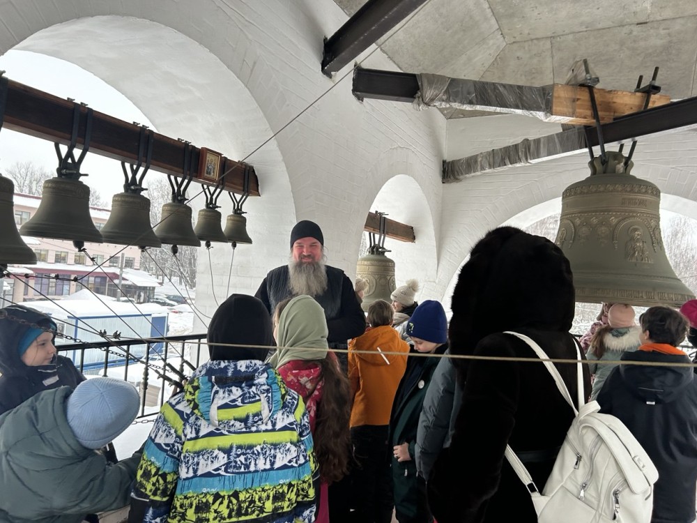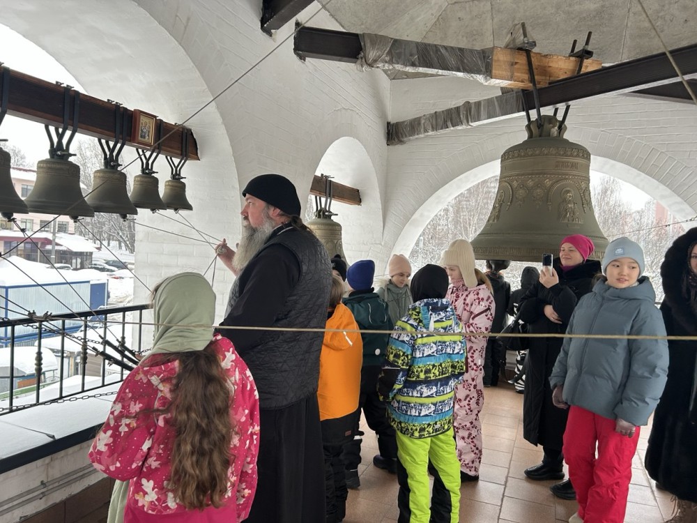 Продолжилась экскурсия на звоннице храма, где дети смогли не только услышать перезвон колоколов, но и сами смогли ударить в самый большой колокол - благовестник.