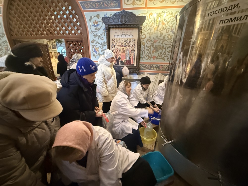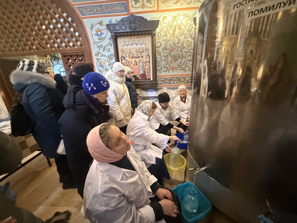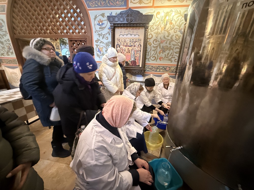 По окончании Богослужений в основном храме в честь Священномученика Ермогена организована раздача верующим Крещенской воды. Все желающие смогли взять домой святую воду, которую бережно хранят в течение всего года и потребляют ее в особых случаях, для исцеления души и тела. И только в праздник Крещения Господня эту Великую святыню можно употреблять в течение всего дня и окроплять ею свои жилища, призывая благодать Божию.