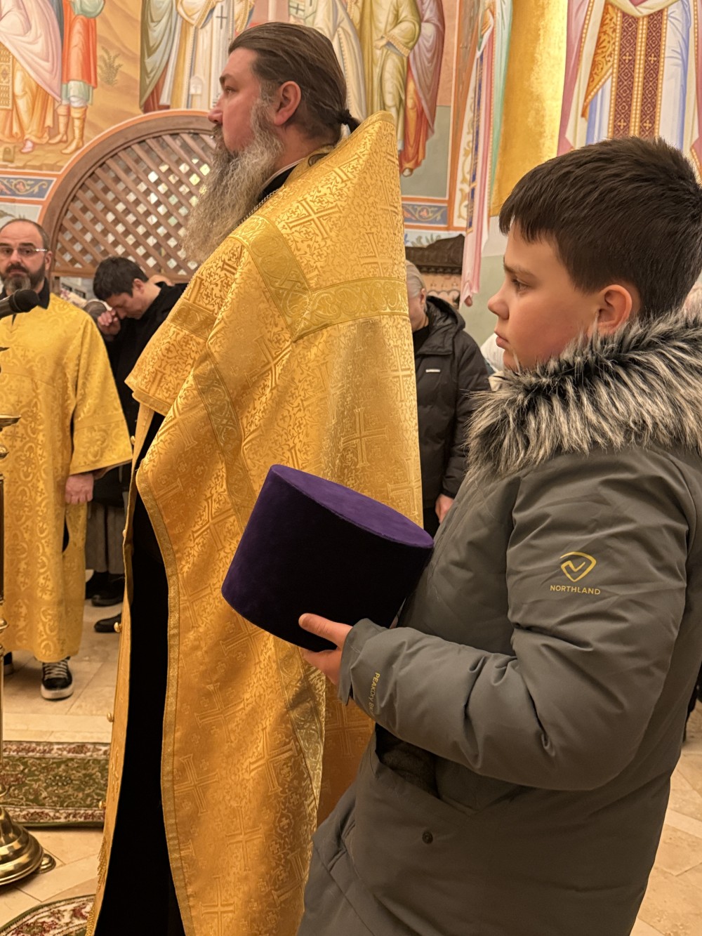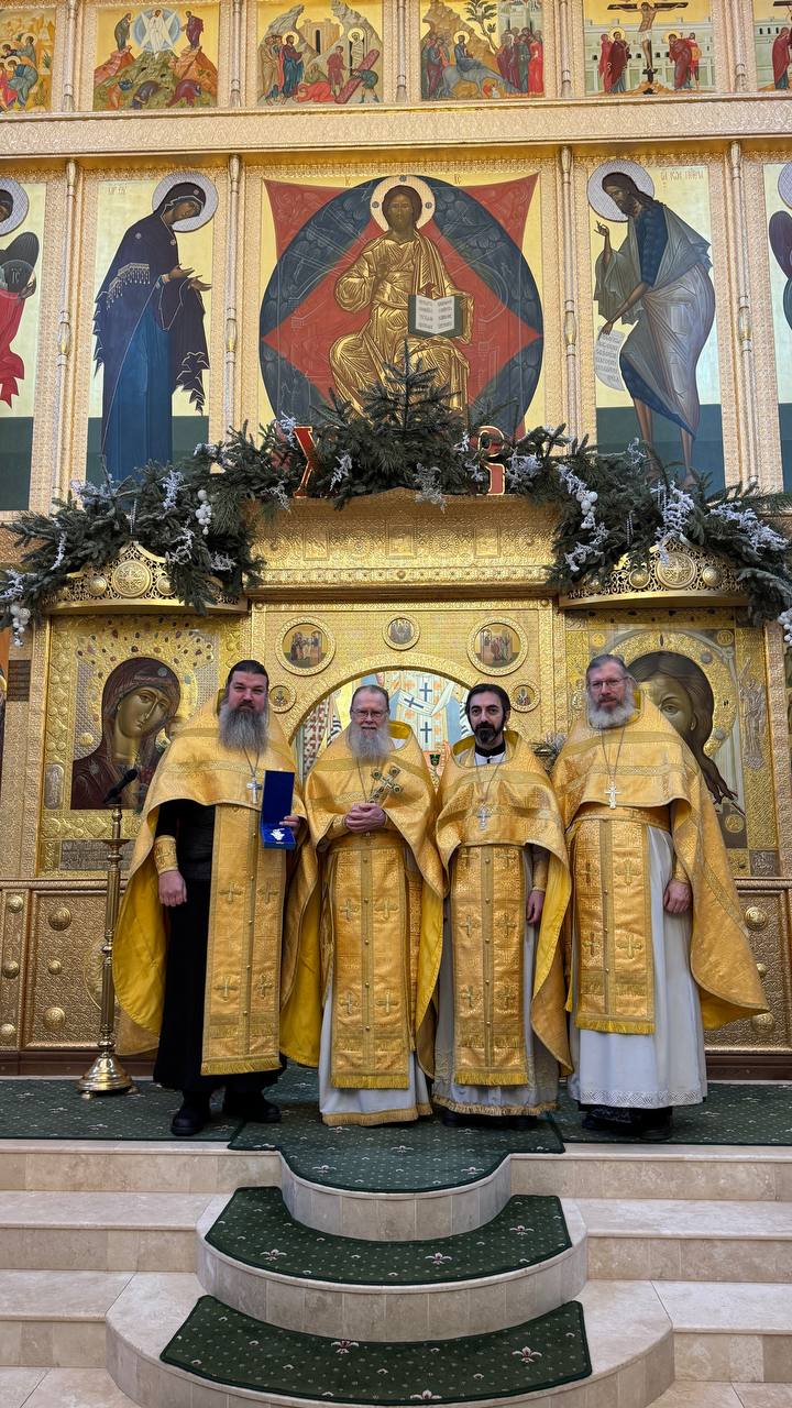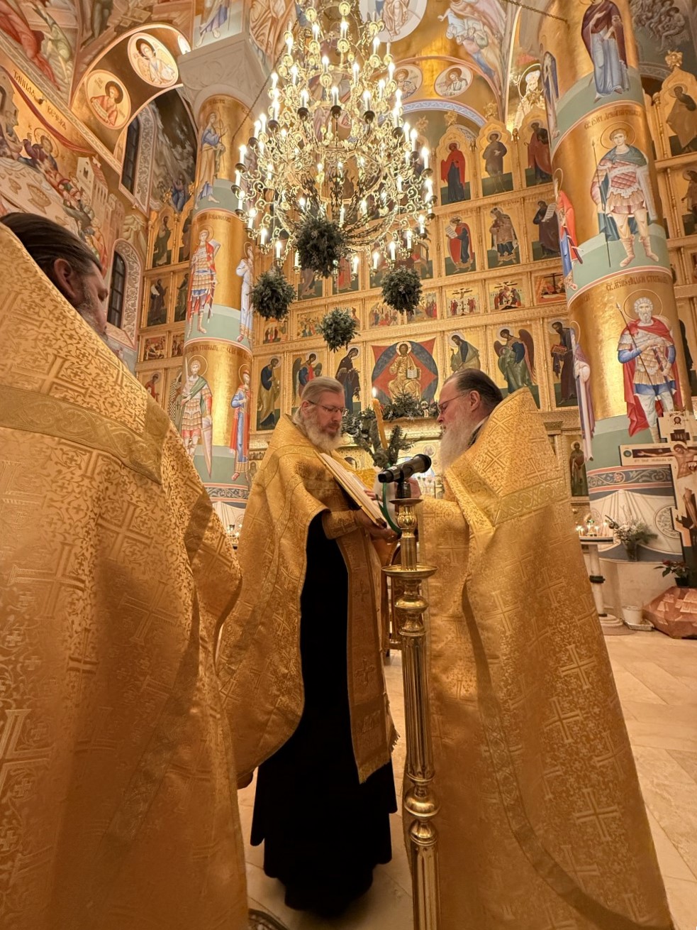 В завершение праздничных Богослужений было исполнено многолетие Святейшему Патриарху Московскому и всея Руси Кириллу по случаю годовщины Патриаршего служения, игумену Серафиму (Беллу) и всем присутствующим именинникам.
