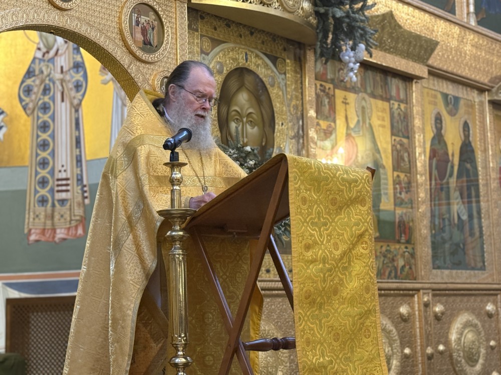 По окончании Божественной Литургии игумен Серафим (Белл) обратился к собравшимся с проповедью, в которой особое внимание уделил притче о мытаре и фарисее и подготовке к Великому посту. Основание всех подвигов — смирение, без которого все наши добродетели и усилия тщетны. А гордость, мнение о своей праведности с уничижением ближних, препятствует нашему покаянию и нашему спасению.