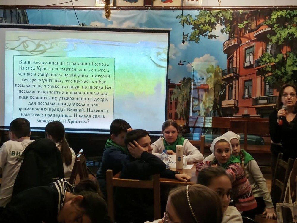 Дети отвечали на вопросы по разным темам: история Ветхого и Нового Заветов, жития святых, устройство храма.