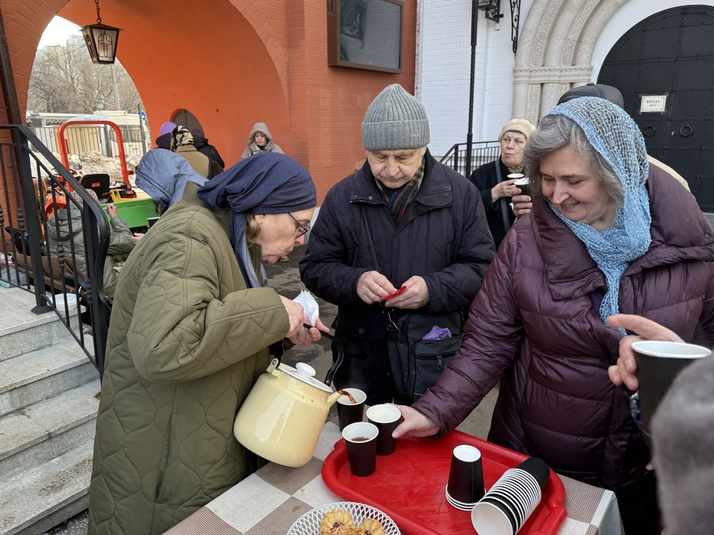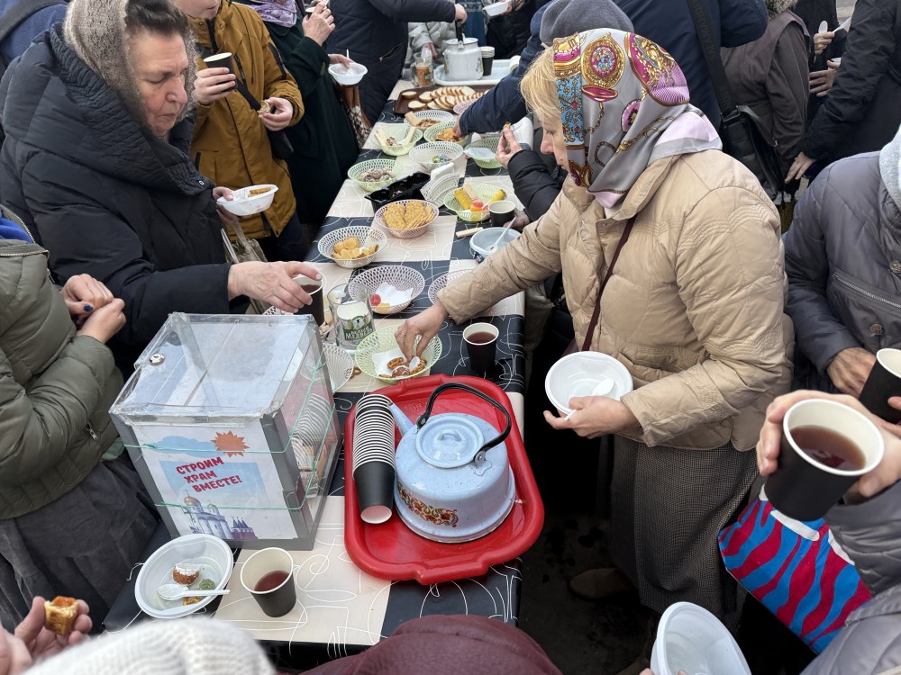 Завершились праздничные Богослужения совместной трапезой, организованной на территории подворья, где прихожане и гости могли угоститься кашей, приготовленной на полевой кухне, а также попробовать традиционный вкусный чай со сладостями.