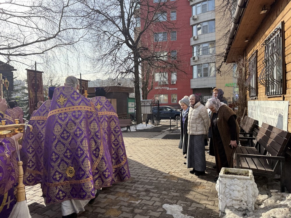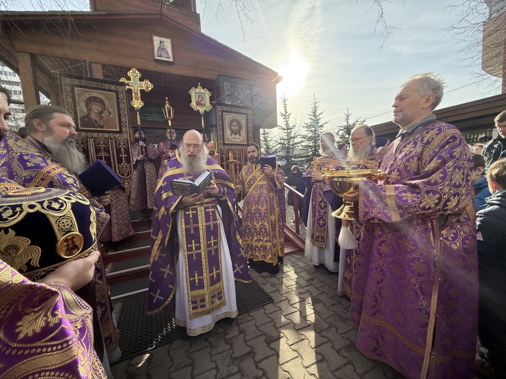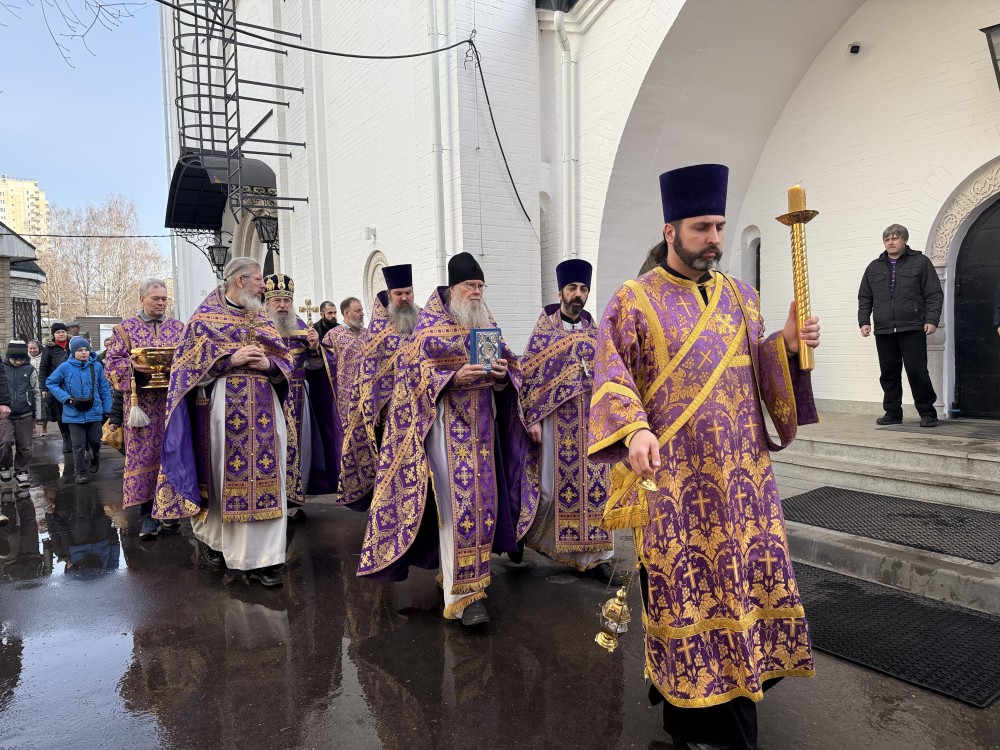 Литургию Преждеосвященных Даров в основном храме в честь Священномученика Ермогена возглавил архимандрит Мелхиседек (Артюхин), настоятель храма святых апостолов Петра и Павла в Ясенево и храма Покрова Пресвятой Богородицы в Ясеневе в сослужении настоятеля храма Священномученика Ермогена в Зюзине иерея Иоанна Омелянчука, духовенства храма и диакона Храма Христа Спасителя, кафедрального собора Русской православной церкви, Иоанна Клинцова.