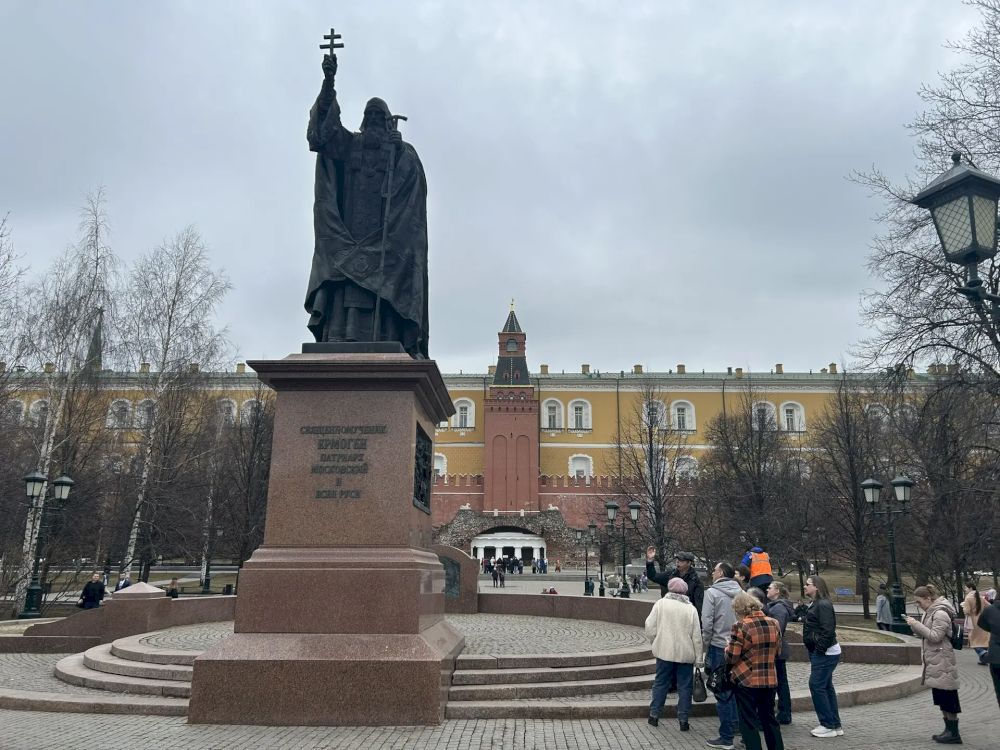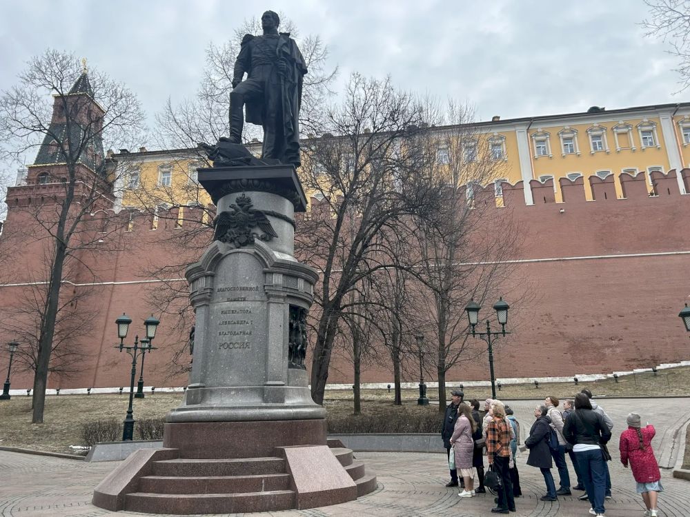 Началась экскурсия от храма памятнику князю Владимиру, затем по Александровскому саду группа прошла к памятнику императору Александру I, далее - к памятнику Патриарху Ермогену.
