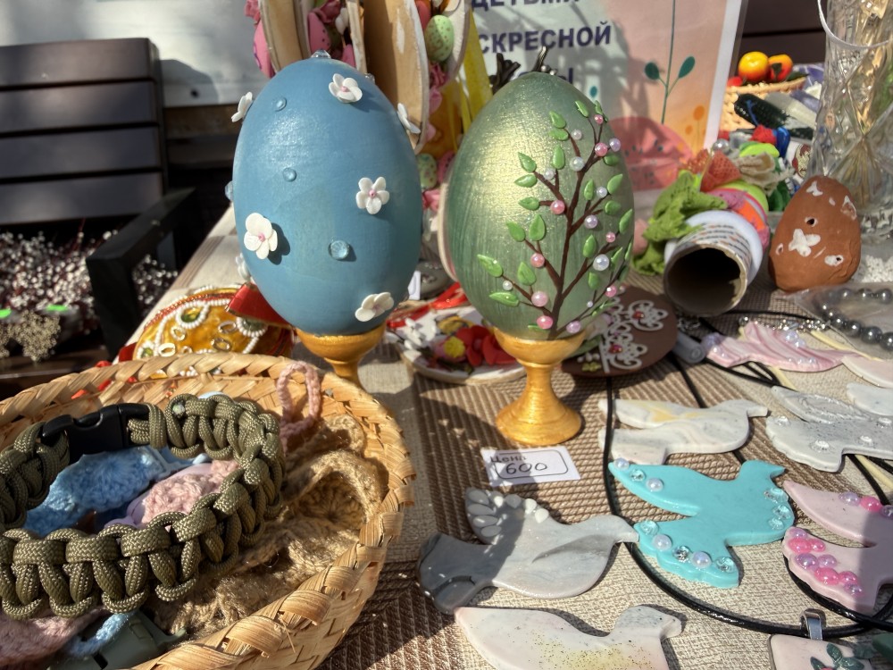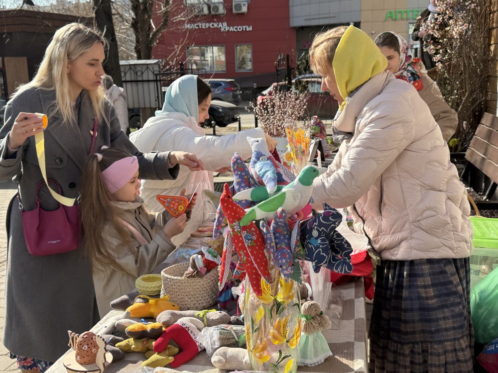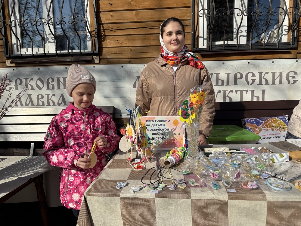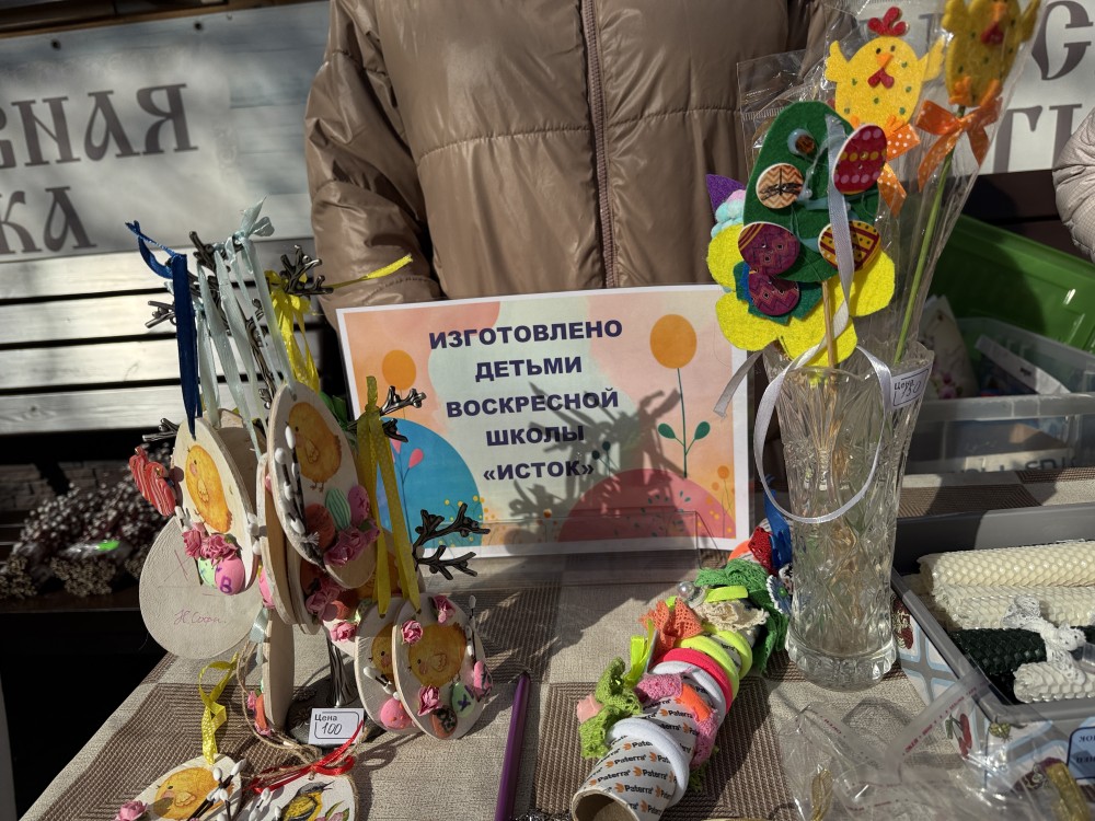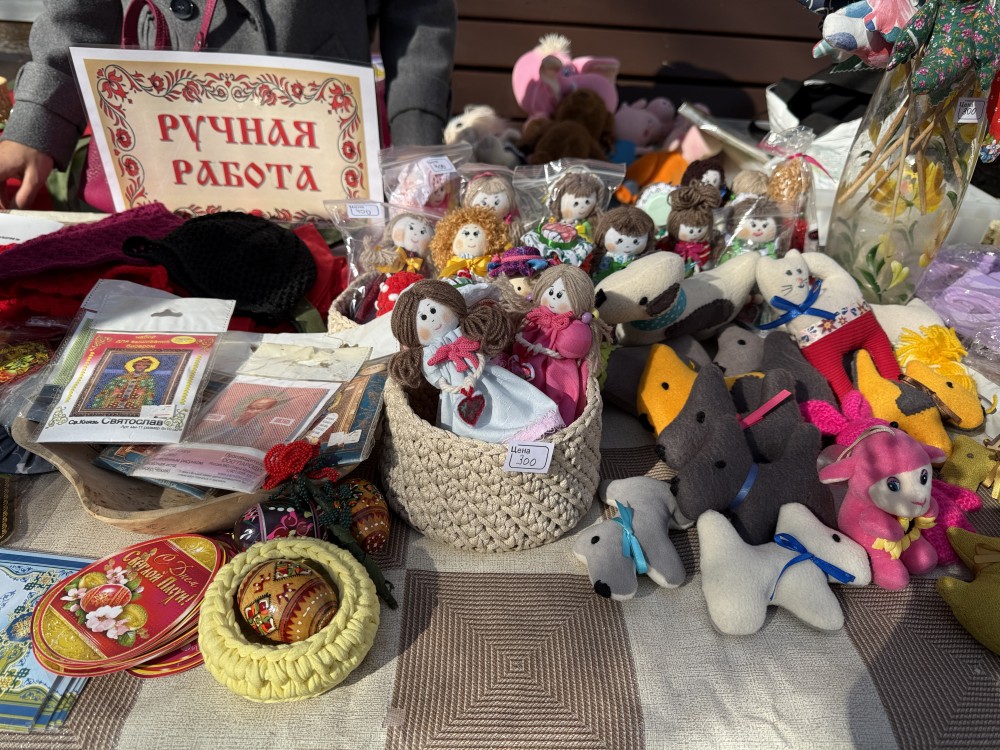 Также традиционно в этот день на территории подворья усилиями прихожан была организована предпасхальная благотворительная ярмарка, на которой были представлены поделки и сувениры, изготовленные воспитанниками Воскресной школы храма, а также изделия ручной работы. Все собранные средства будут направлены на нужды храма и изготовление пасхальных куличей для воинов и отправку их на фронт.