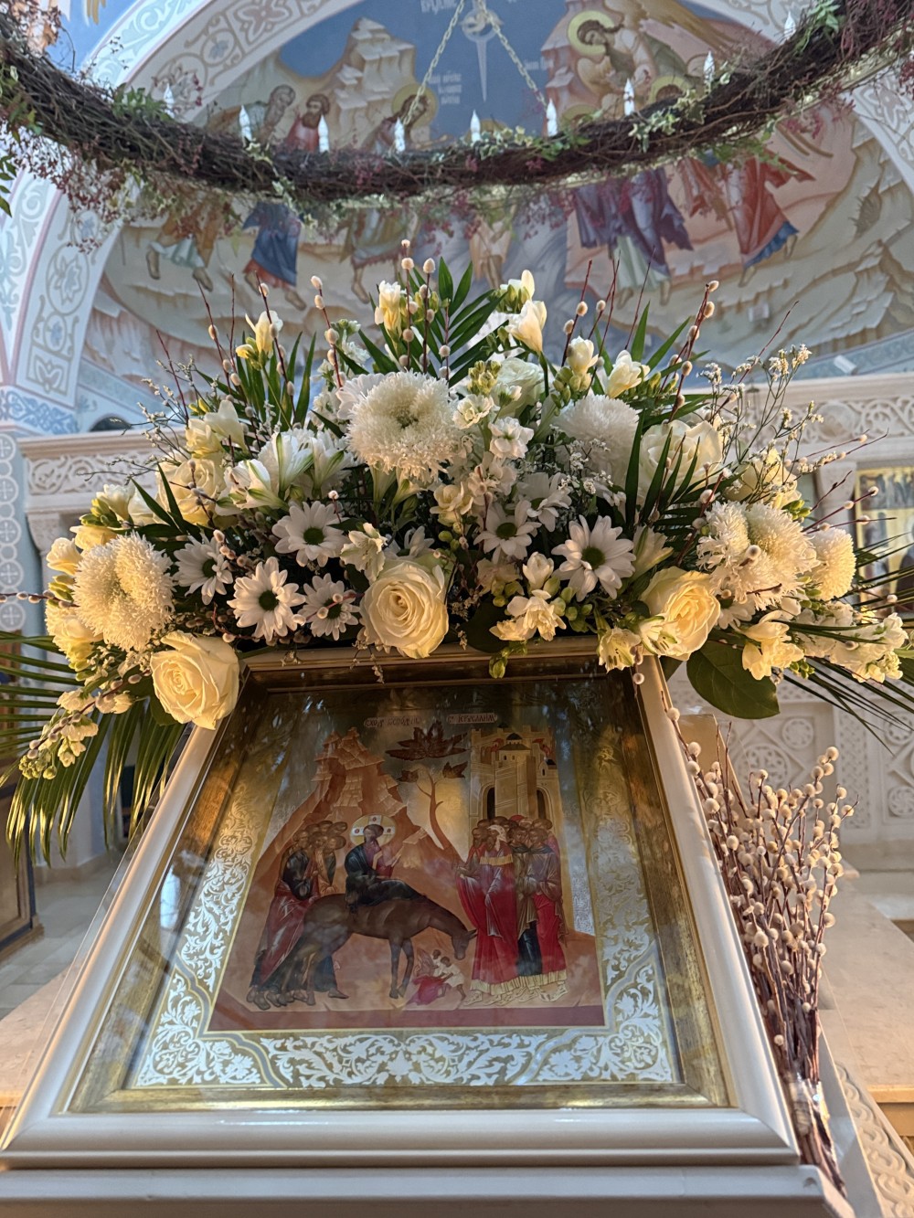За Всенощным бдением, а также в сам день праздника по окончании Божественной Литургии, состоялось освящение ваий - веточек вербы, с которыми верующие люди приходят в храм, чтобы встретить Господа, грядущего исполнить волю Отца Своего Небесного о спасении всех людей.