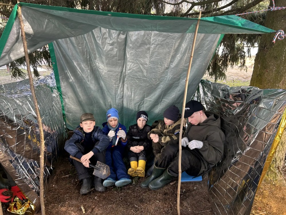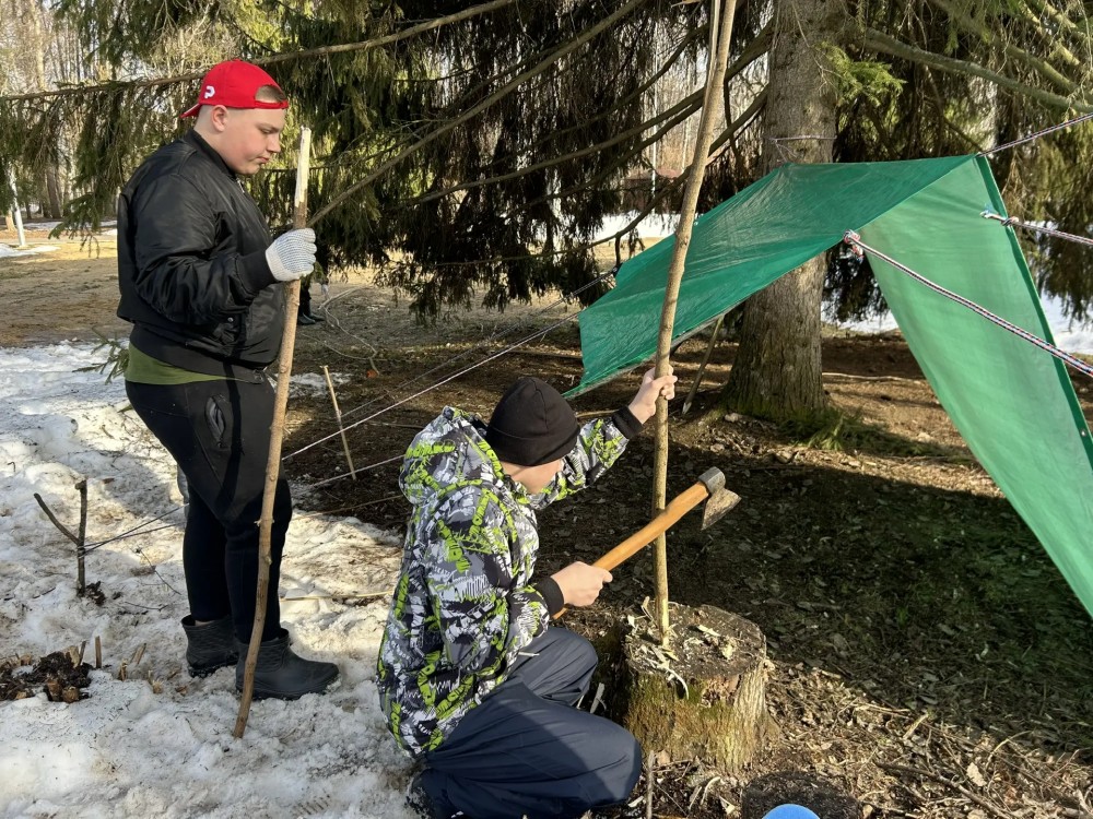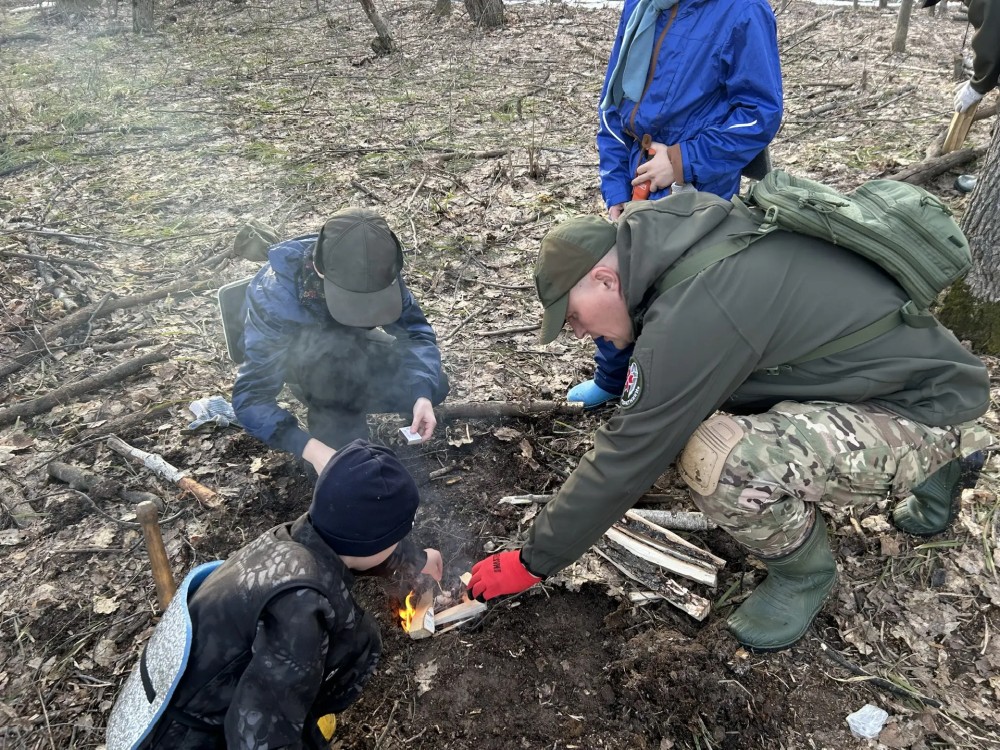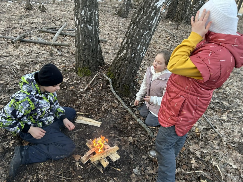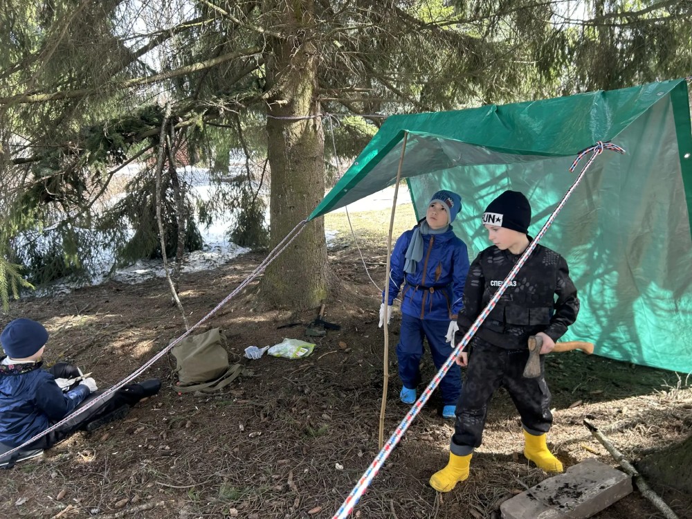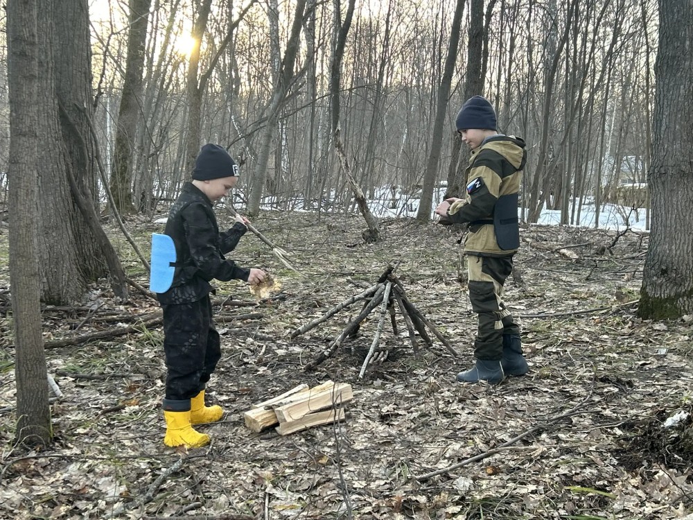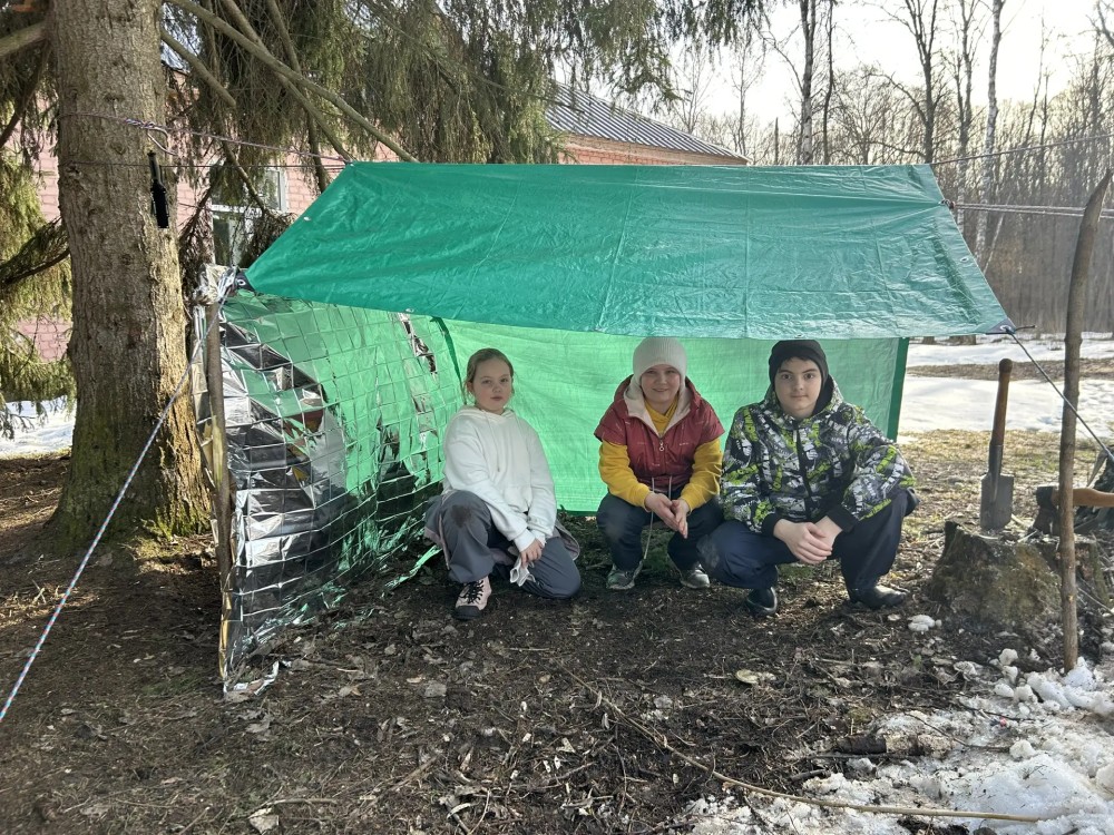 Дети учились оказывать спасение на воде утопающим, разводить костёр и делать укрытие в лесу.
