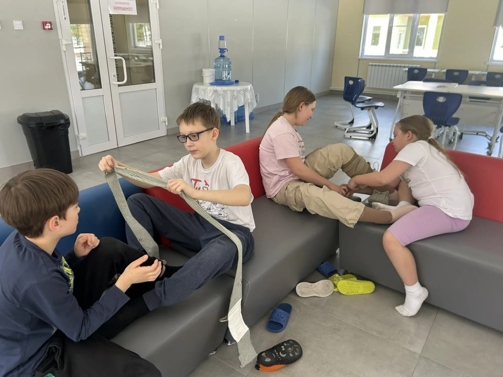 Ребята осваивали сначала теорию, а затем практически отрабатывали полученные знания: оказание первой помощи при травмах и переломах, при попадании инородных тел в дыхательные пути, ушибах и в других сложных ситуациях.
