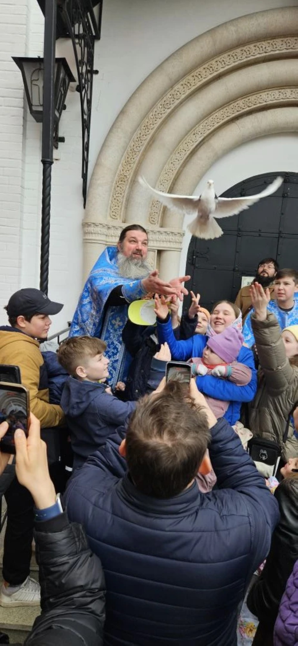 По окончании Богослужений настоятель храма иерей Иоанн Омелянчук со священниками храма выпустили в небо белых голубей, в честь доброй традиции, совершаемой в этот праздник.