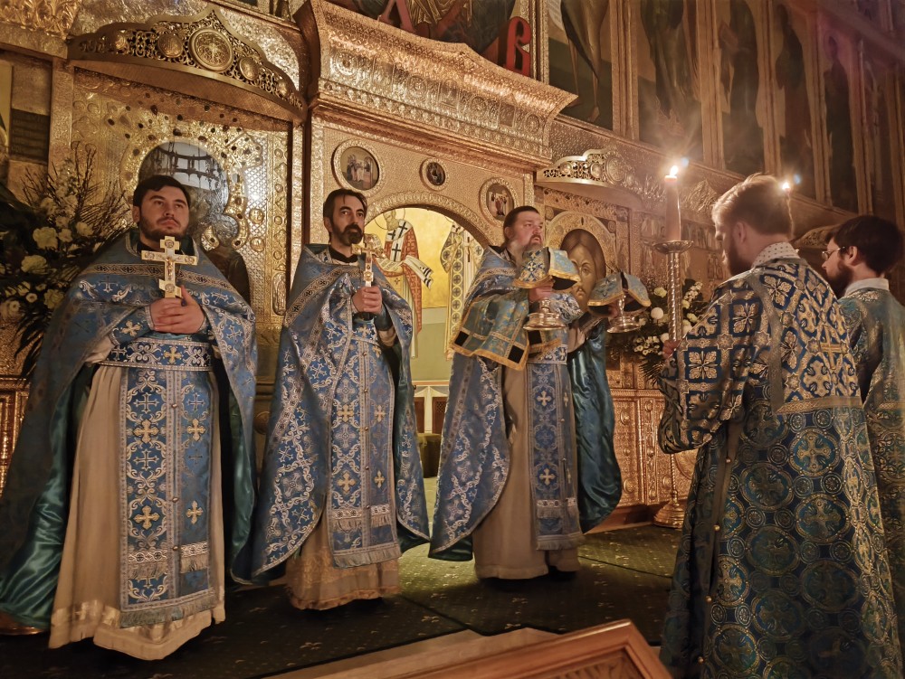 Праздничное Всенощное бдение и ночную Литургию возглавил настоятель храма иерей Иоанн Омелянчук в сослужении духовенства храма.