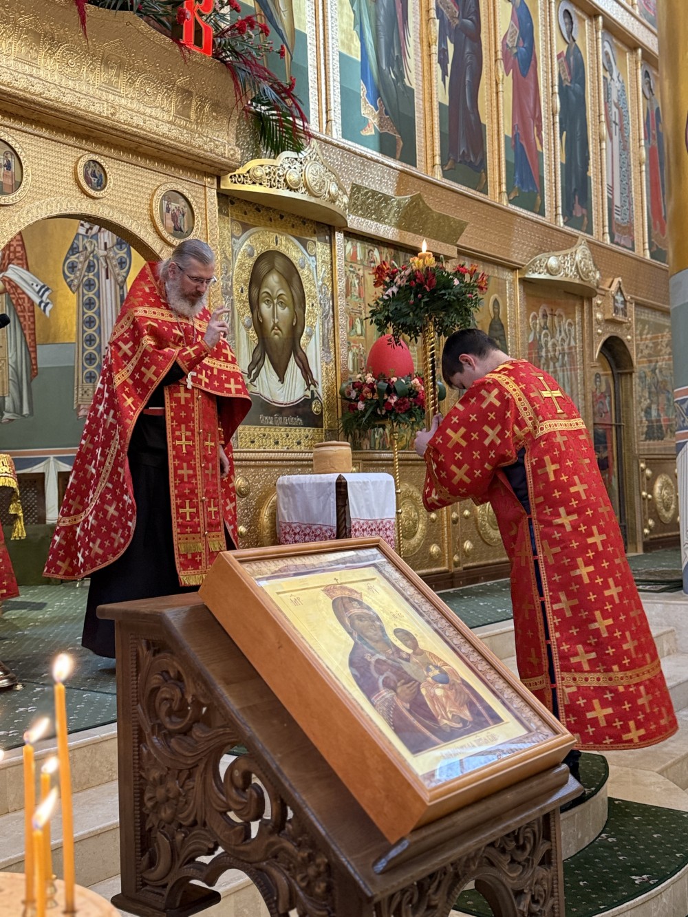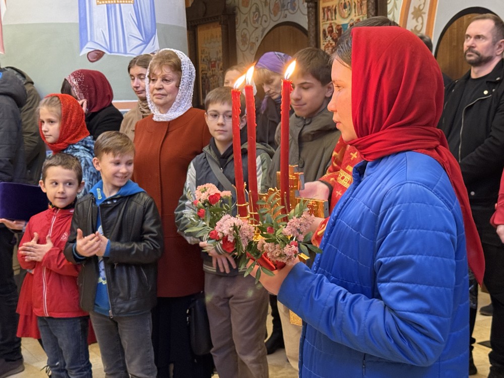 12 апреля, воскресным Пасхальным вечером, в храме Священномученика Ермогена, Патриарха Московского и всея Руси, чудотворца, в Зюзине, совершена Пасхальная вечерня и утреня, отслужил которые настоятель храма иерей Иоанн Омелянчук в сослужении иерея Андрея Кириченко.