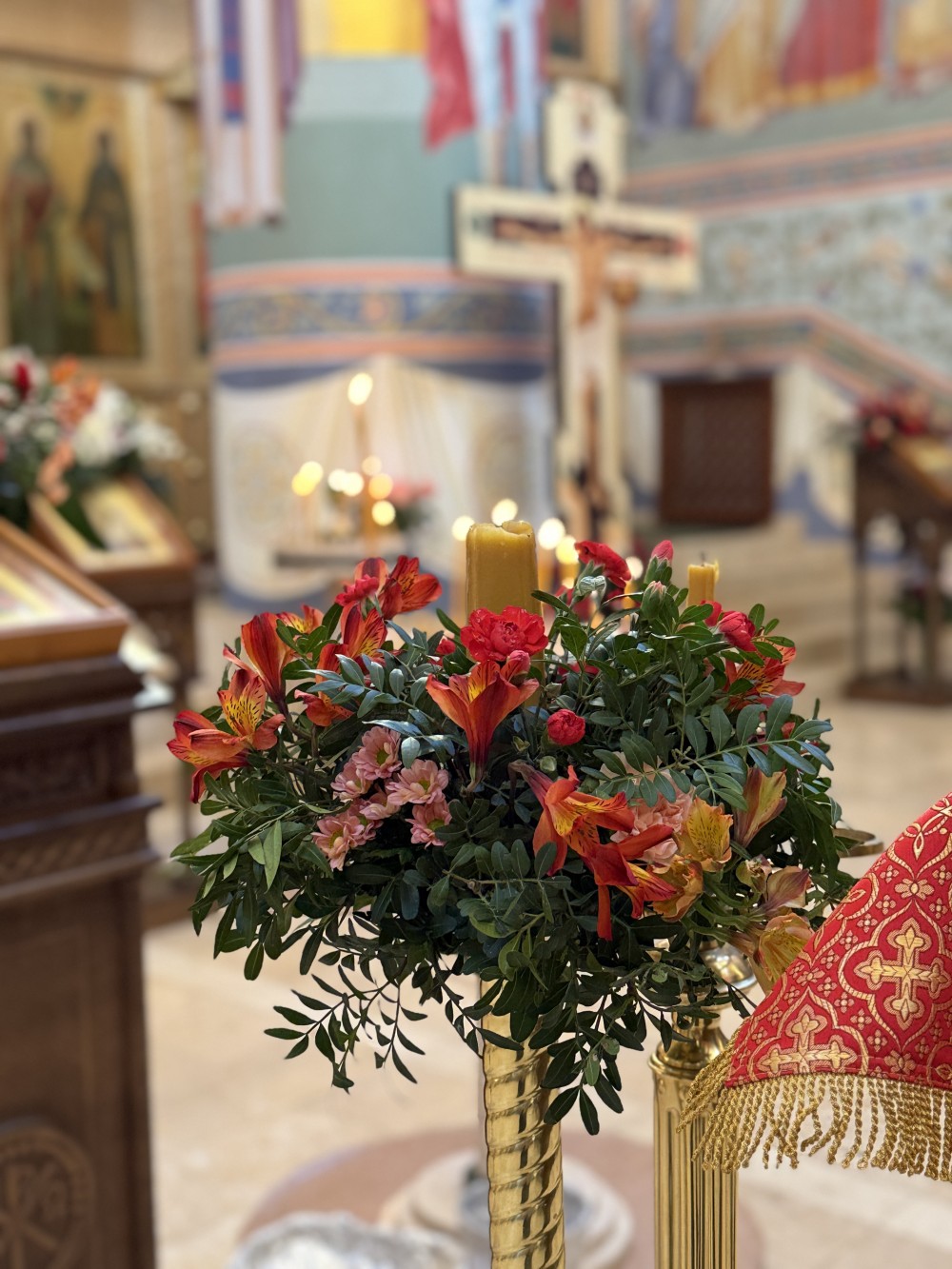 После Литургии бывает Крестный ход вокруг храма и звон в воспоминание святых жен-мироносиц, встретивших Господа по Воскресении. Во время Крестного хода вокруг храма обносится и артос. В субботу после Литургии артос разрезается на части и раздается народу.