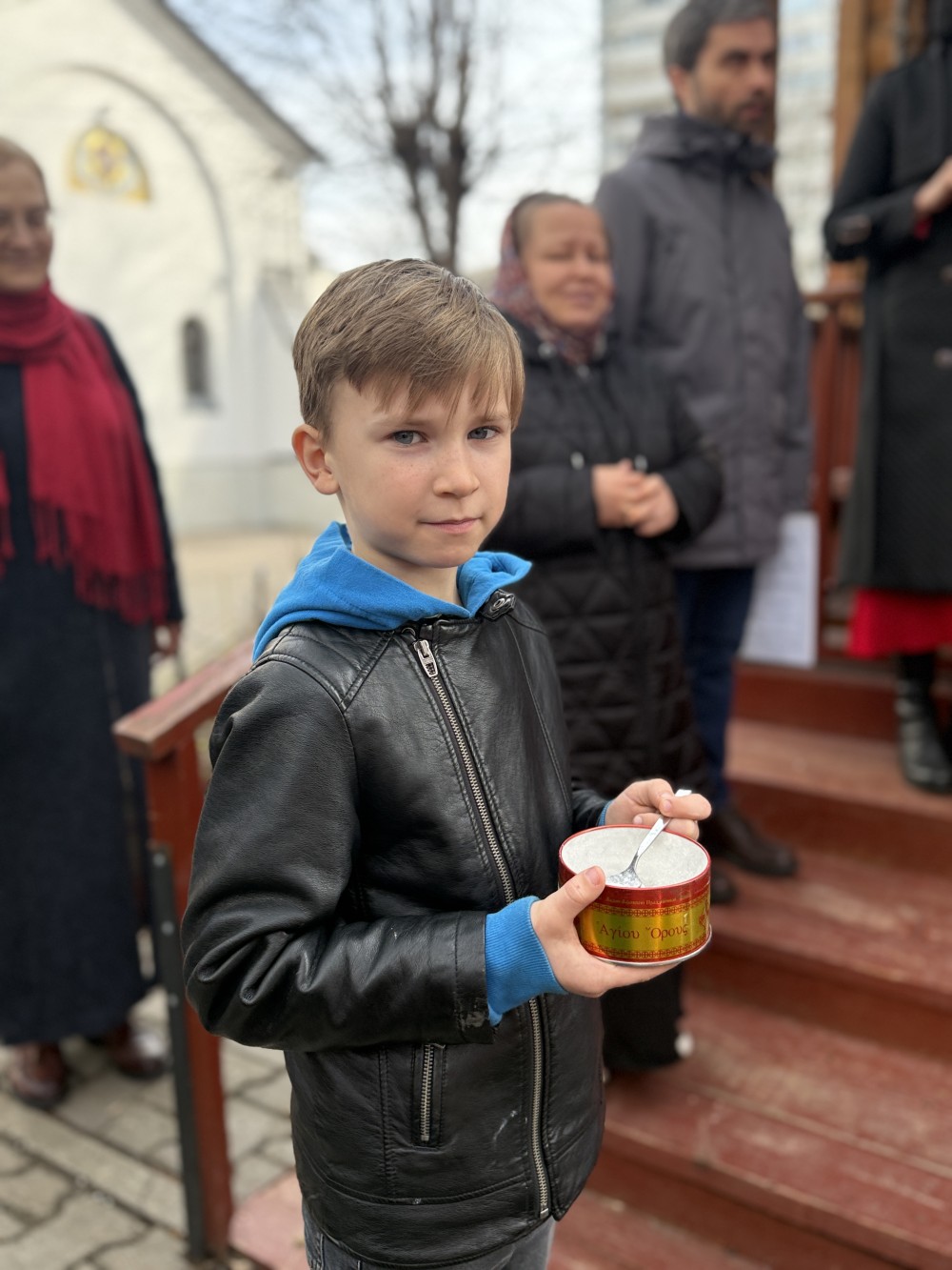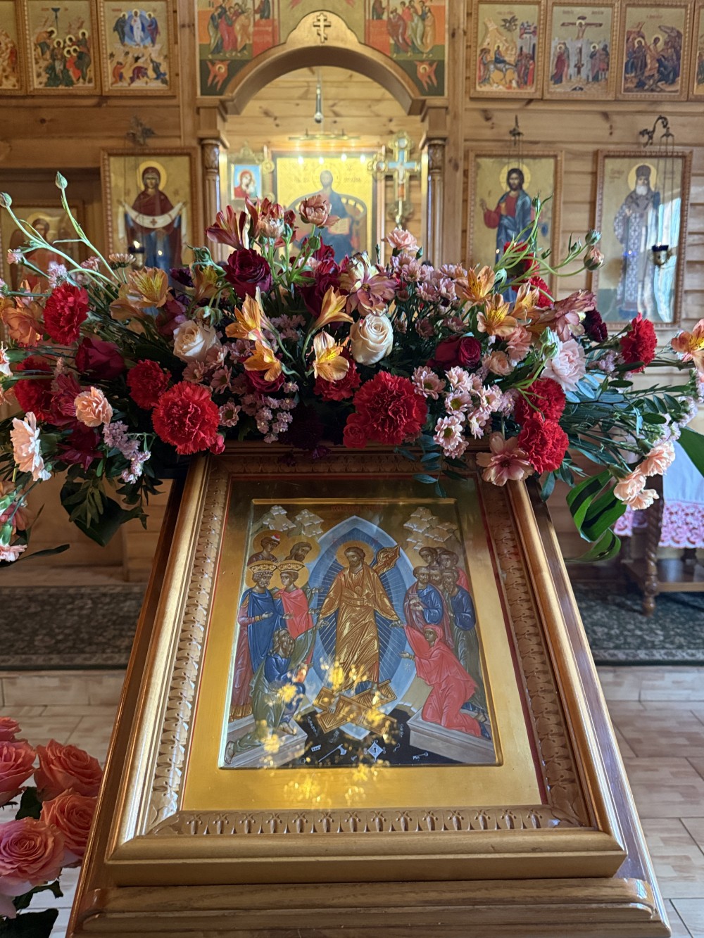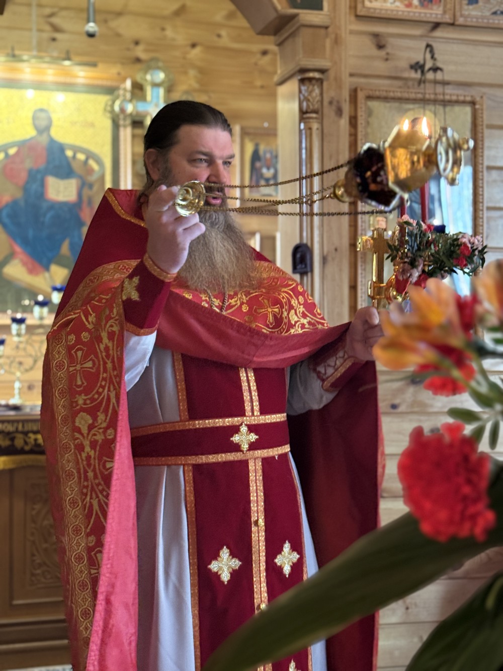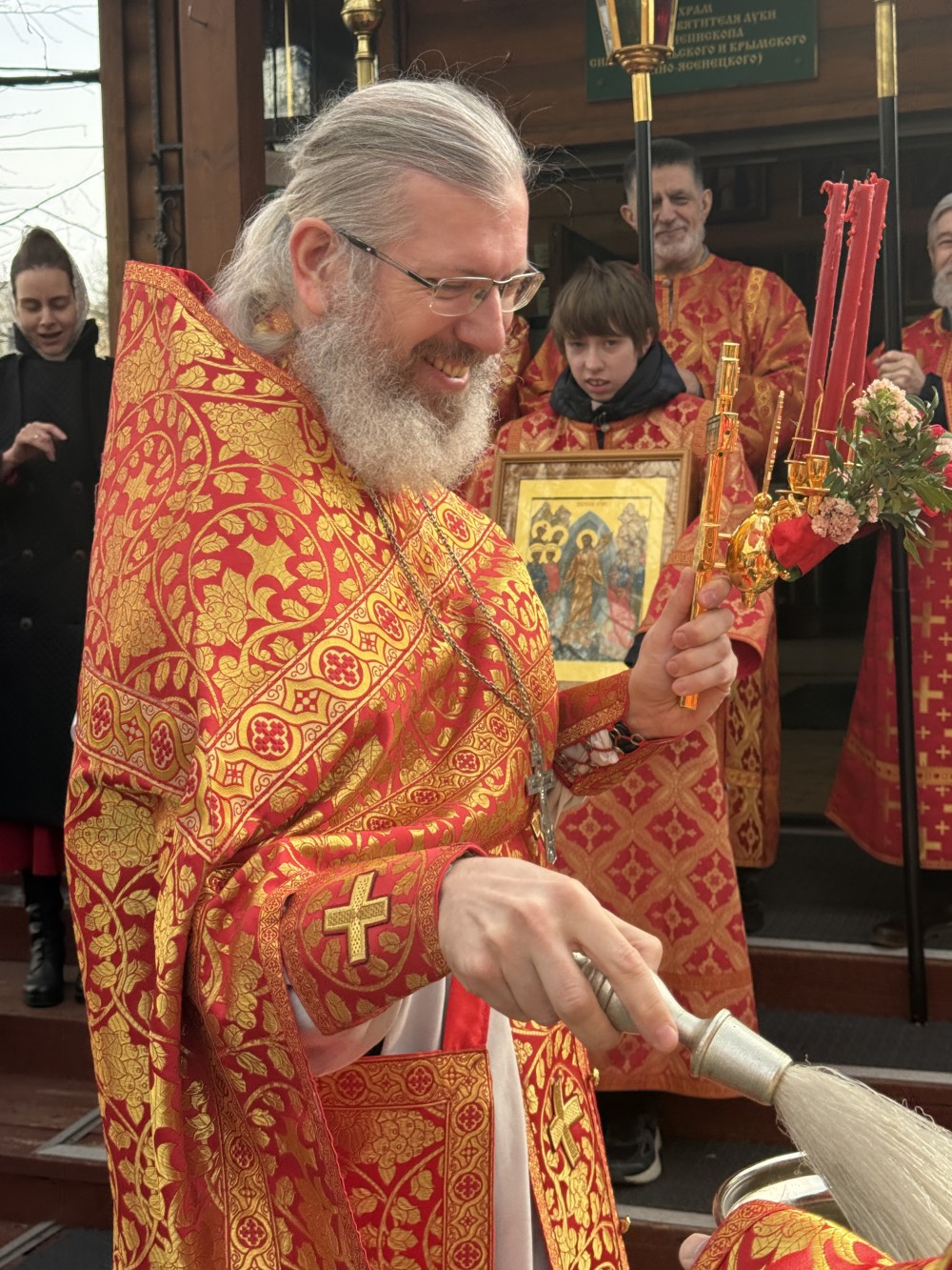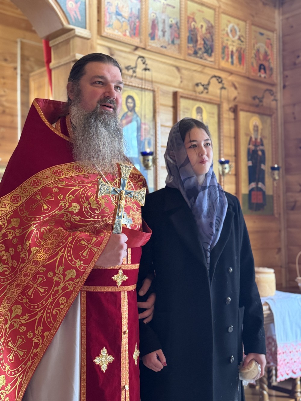 В завершение настоятель обратился к собравшимся с проповедью, а также поздравил с днем рождения юную прихожанку.