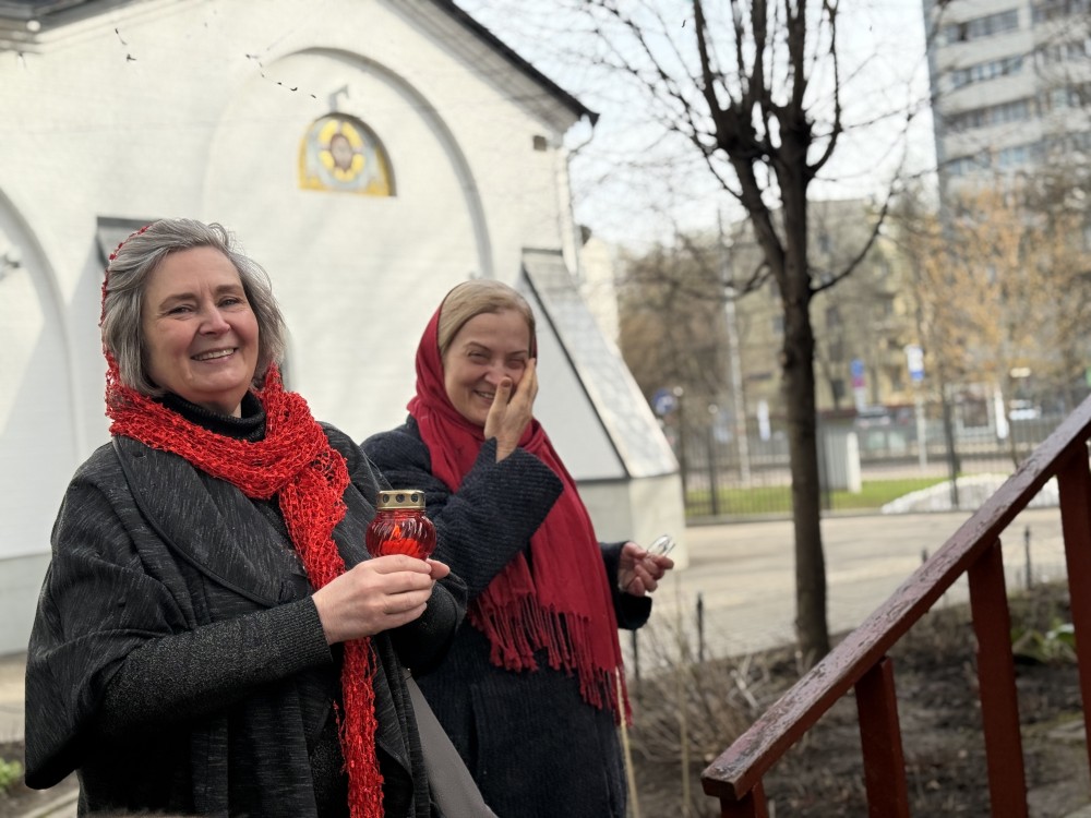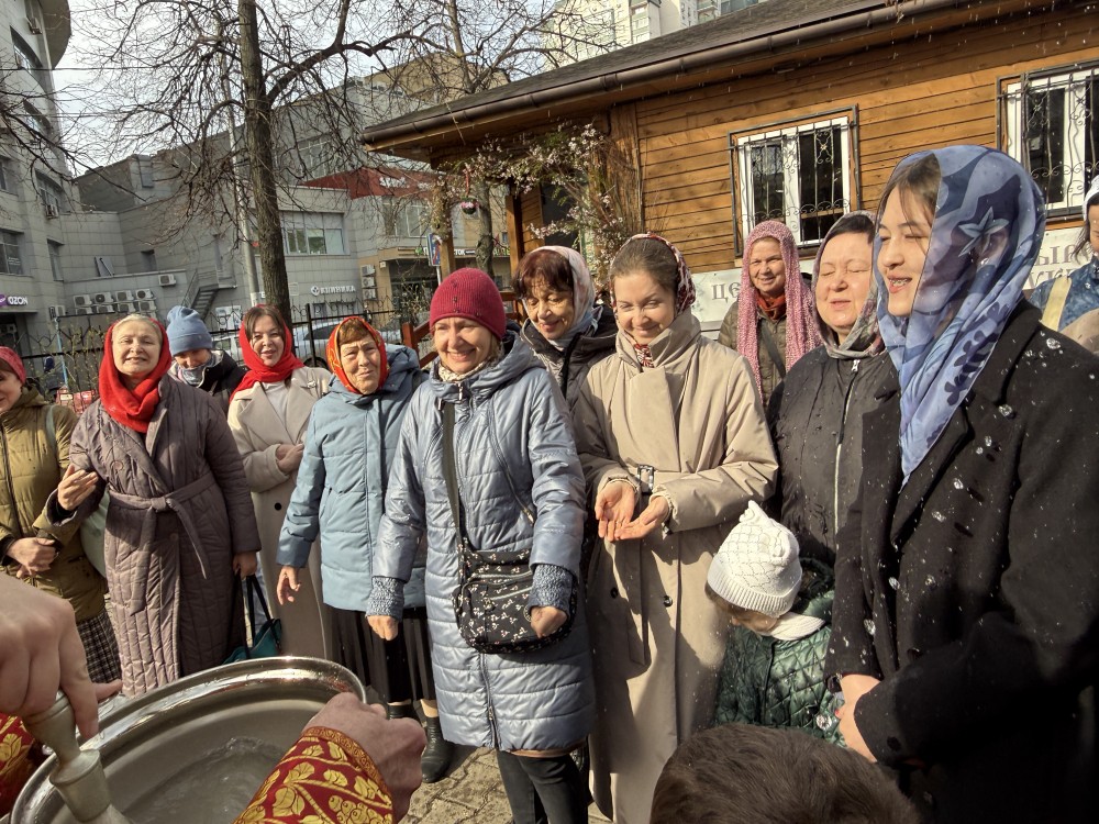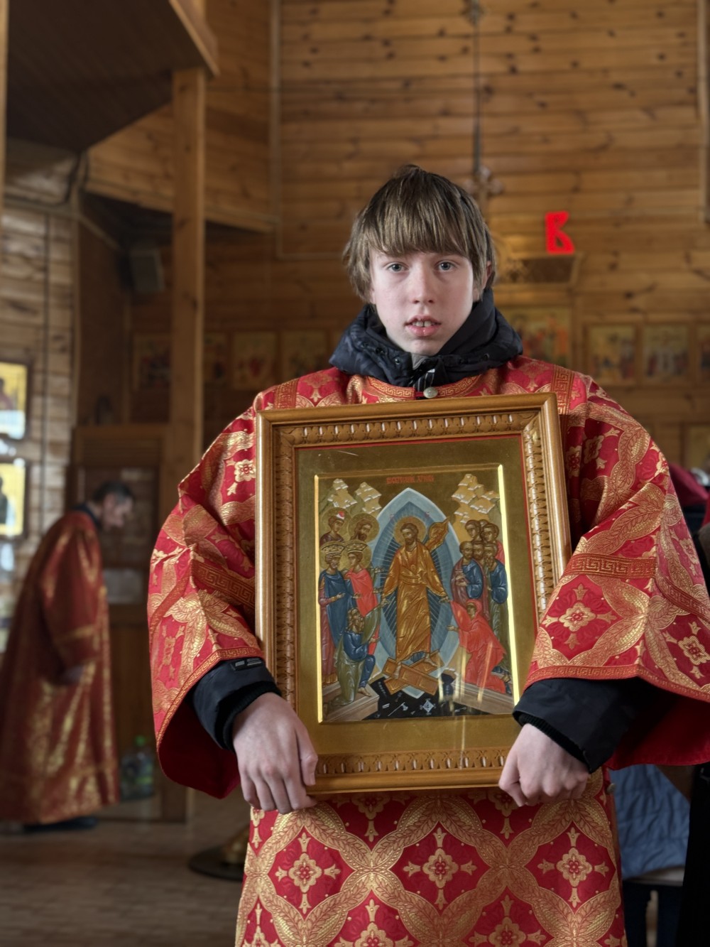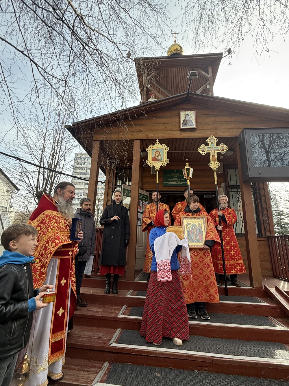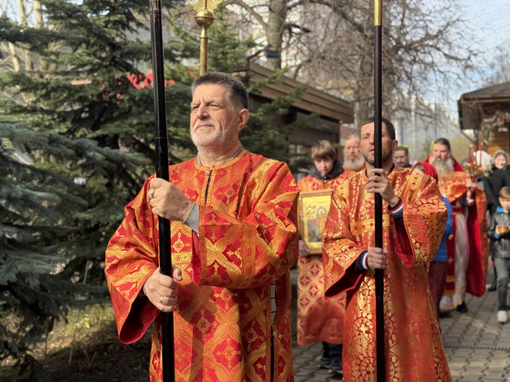 По окончании Божественной Литургии совершен Крестный Ход с участием прихожан храма, сопровождаемый Пасхальным колокольным звоном, возвещающим благую весть о Воскресении Спасителя и окропление прихожан Святой водой.
