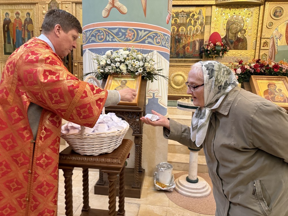 Также в этот день состоялась раздача артоса, заготовленного накануне силами прихожан храма. Все желающие смогли принять участие в этом благом деле и потрудиться во Славу Божию - необходимо было разрезать и упаковать артос к раздаче.