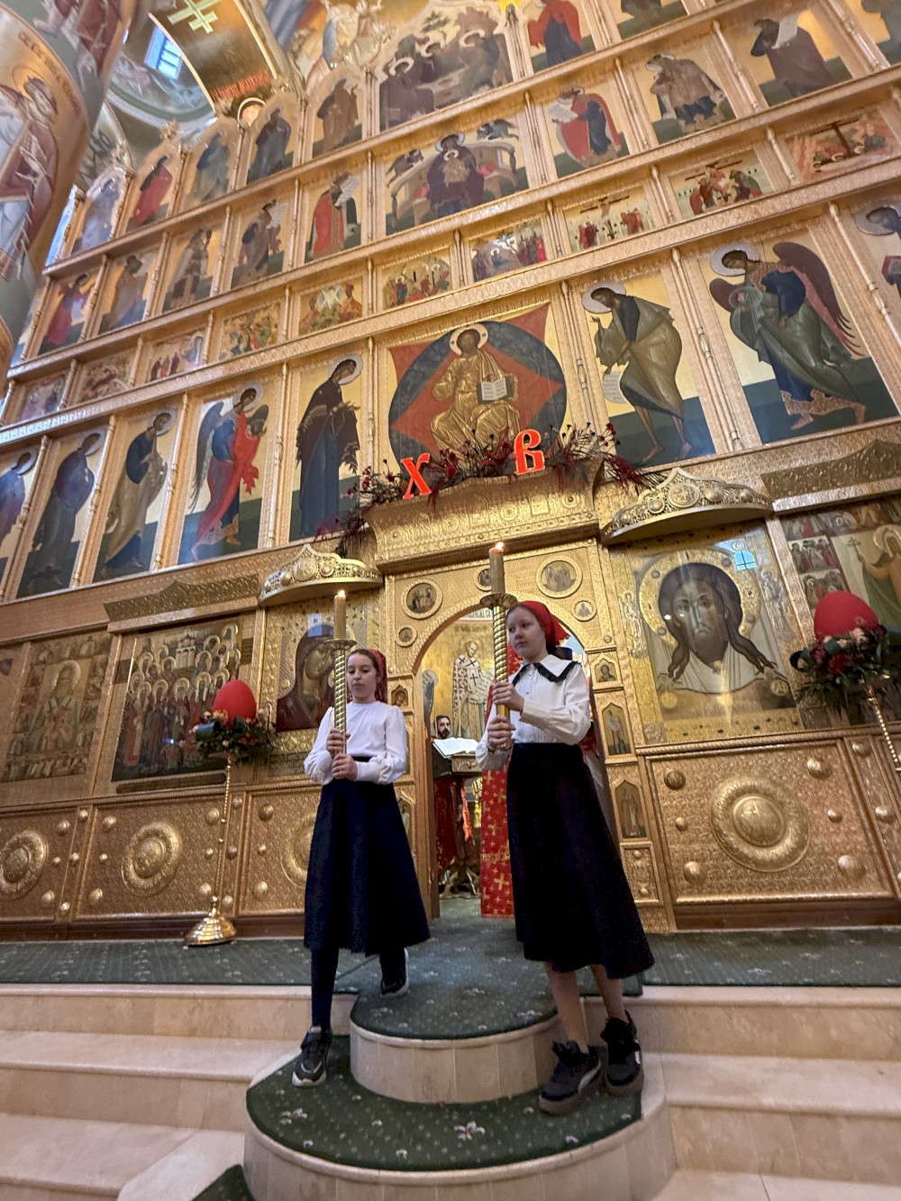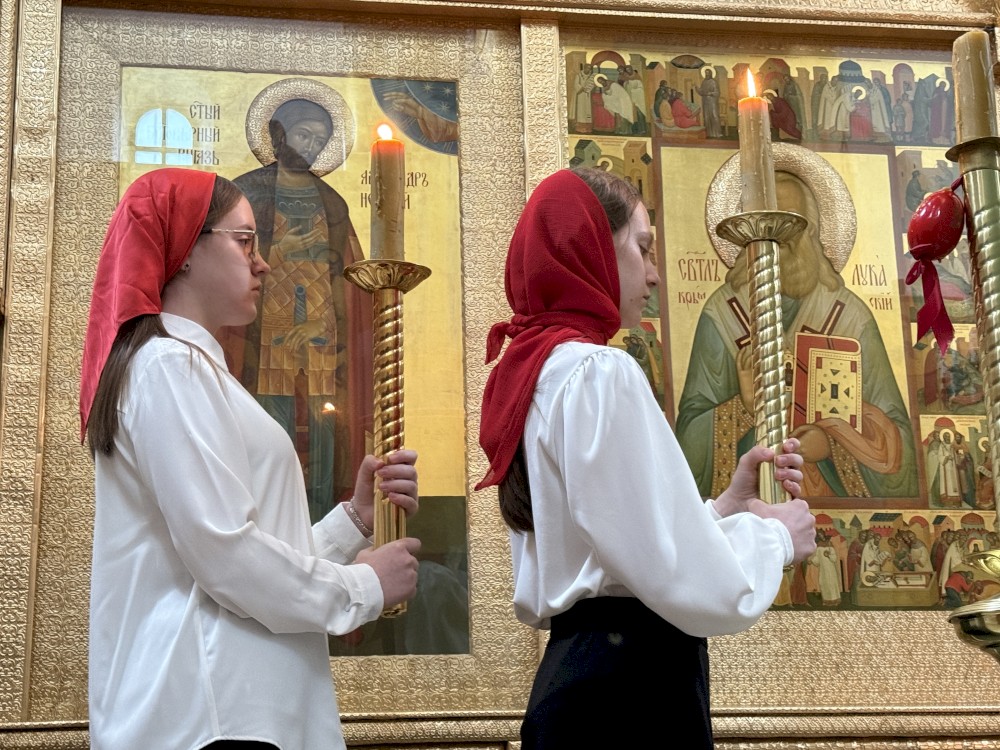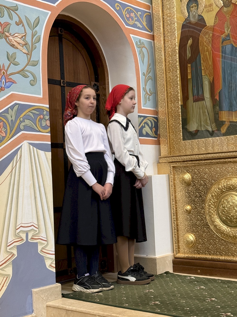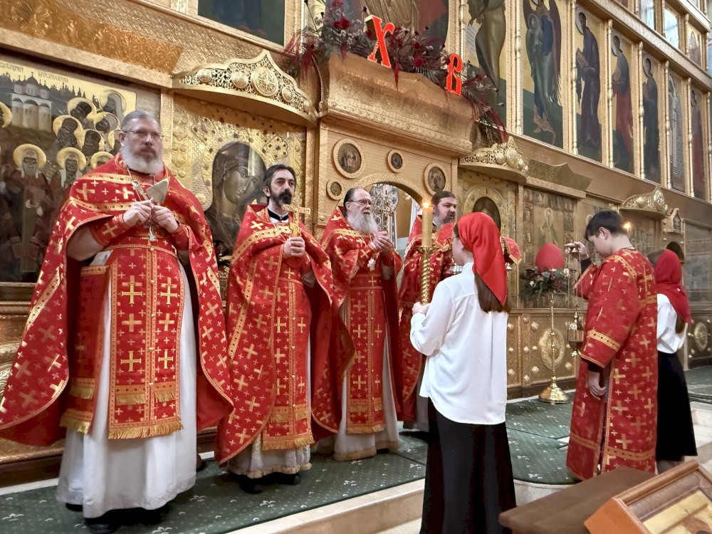 Особенностью Богослужения стало участие воспитанниц Воскресной школы "Исток" и прихожанок храма Священномученика Ермогена, Патриарха Московского и всея Руси, чудотворца, в Зюзине.