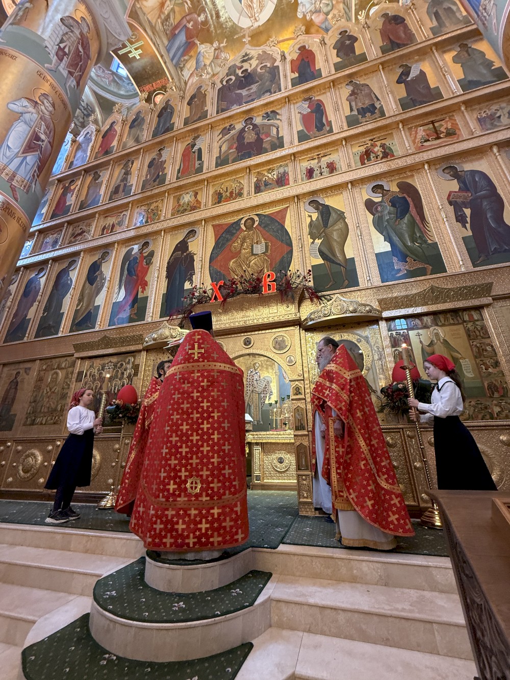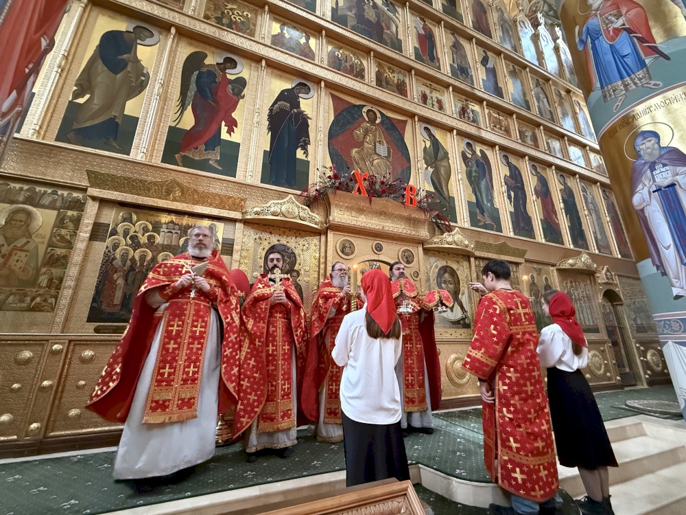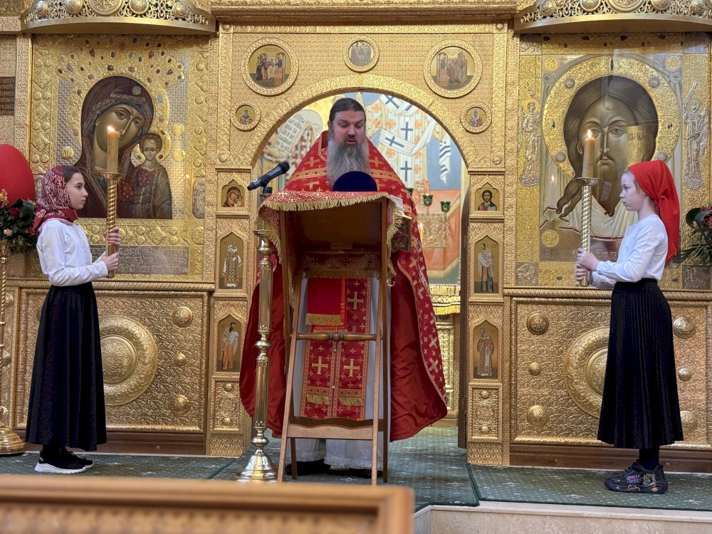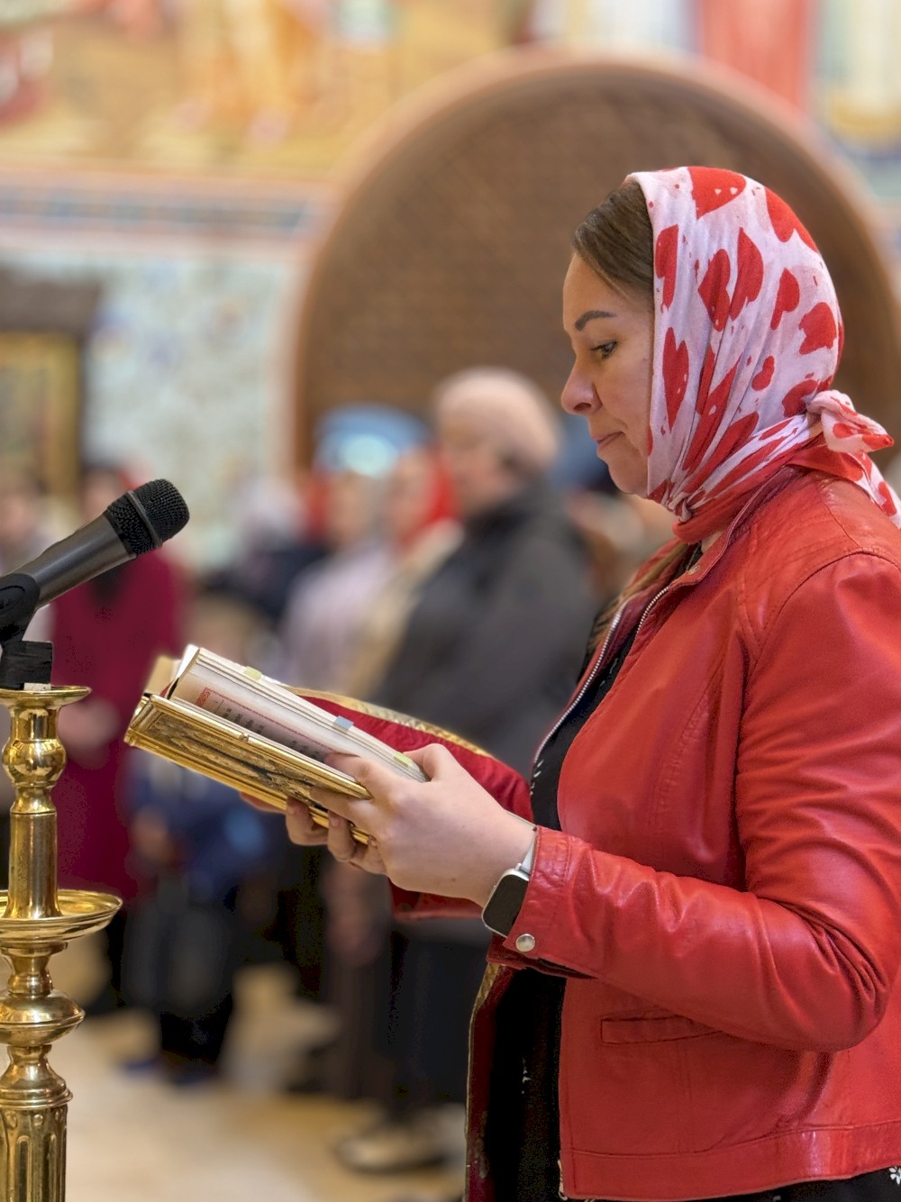 Особенностью Богослужения стало участие воспитанниц Воскресной школы "Исток" и прихожанок храма Священномученика Ермогена, Патриарха Московского и всея Руси, чудотворца, в Зюзине.
