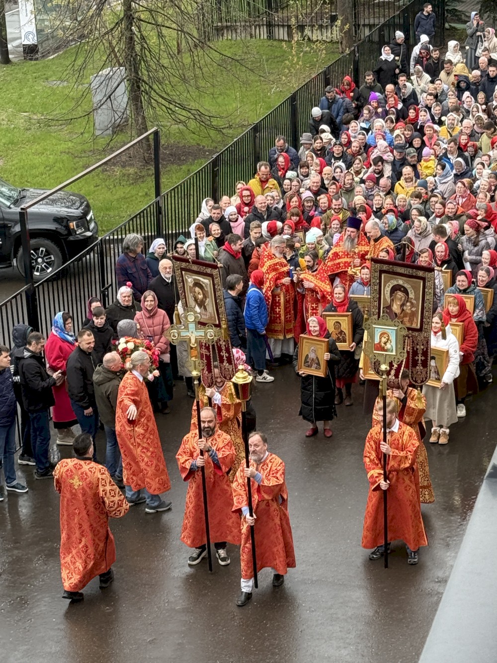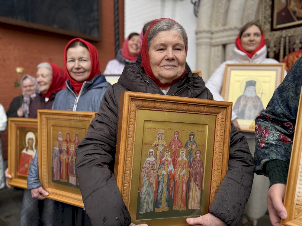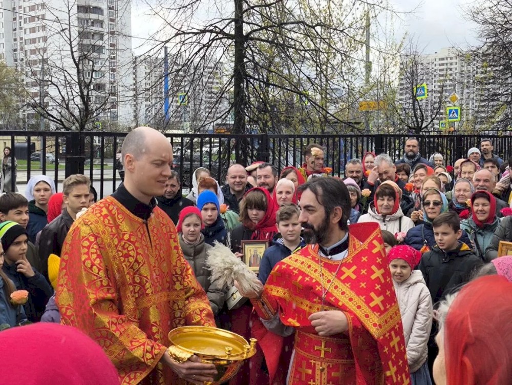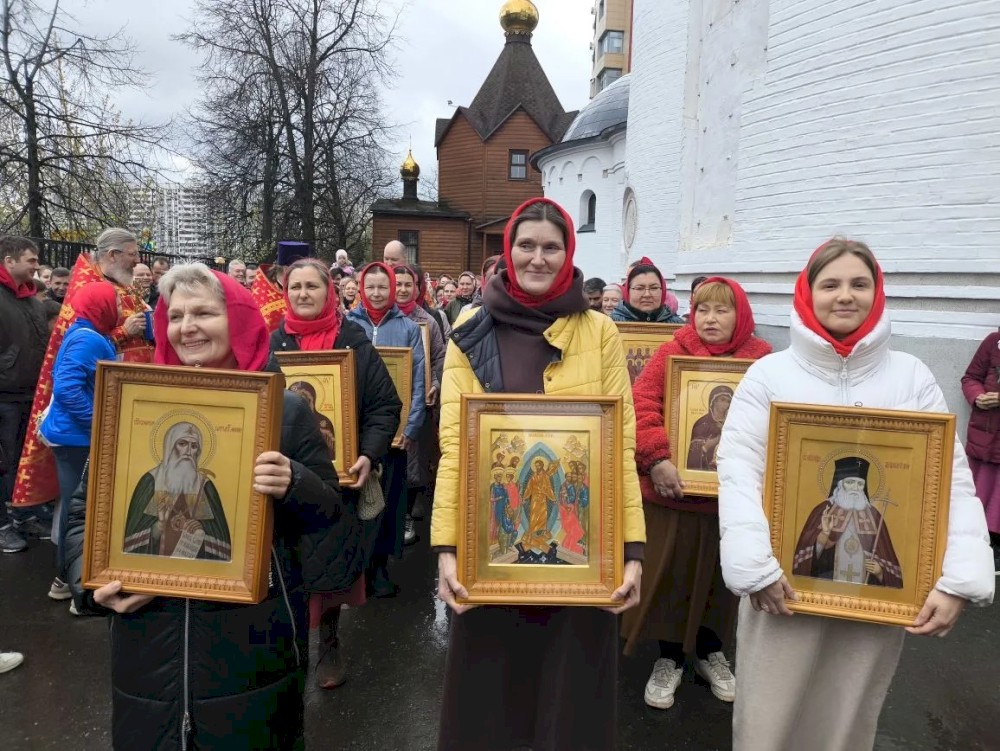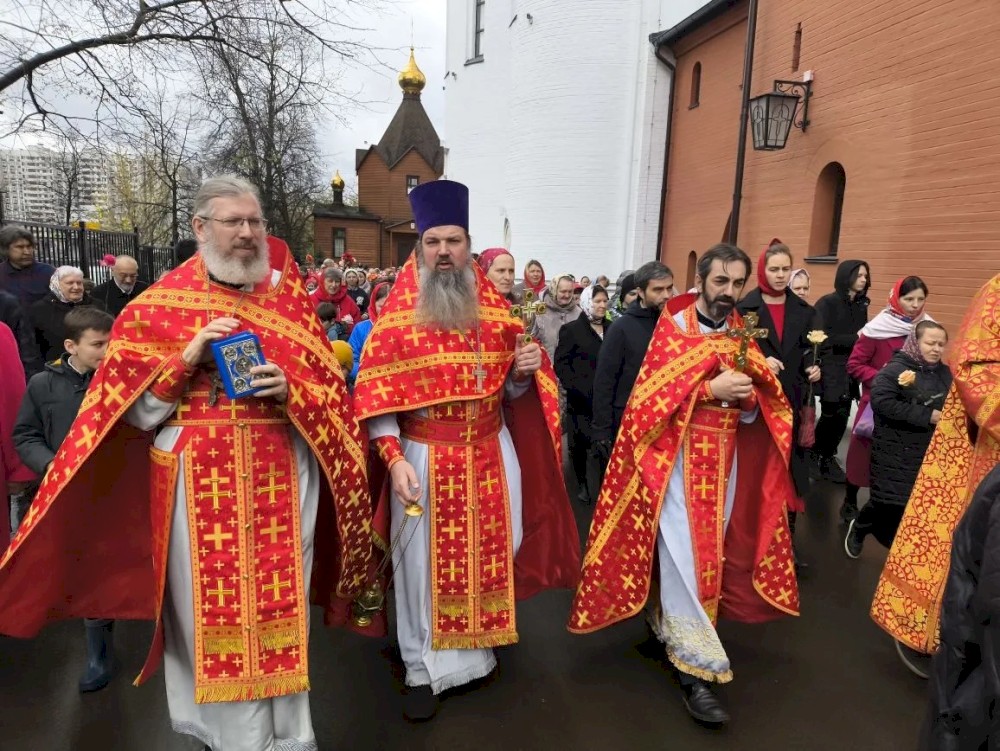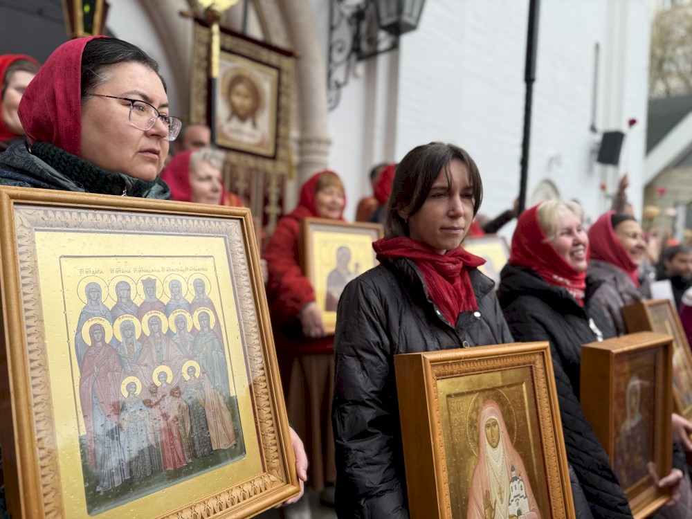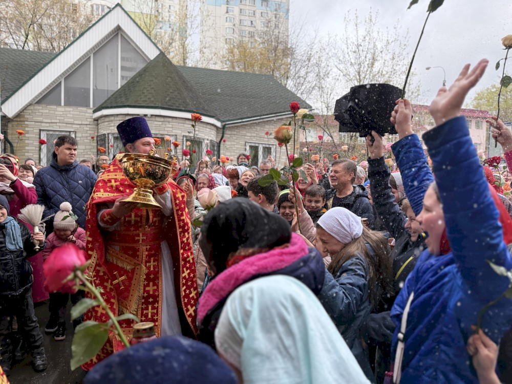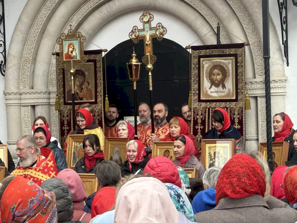 В завершение под сопровождение праздничного колокольного звона состоялся торжественный Крестный ход с участием прихожанок храма, которые несли в руках цветы и иконы с ликами святых жен.