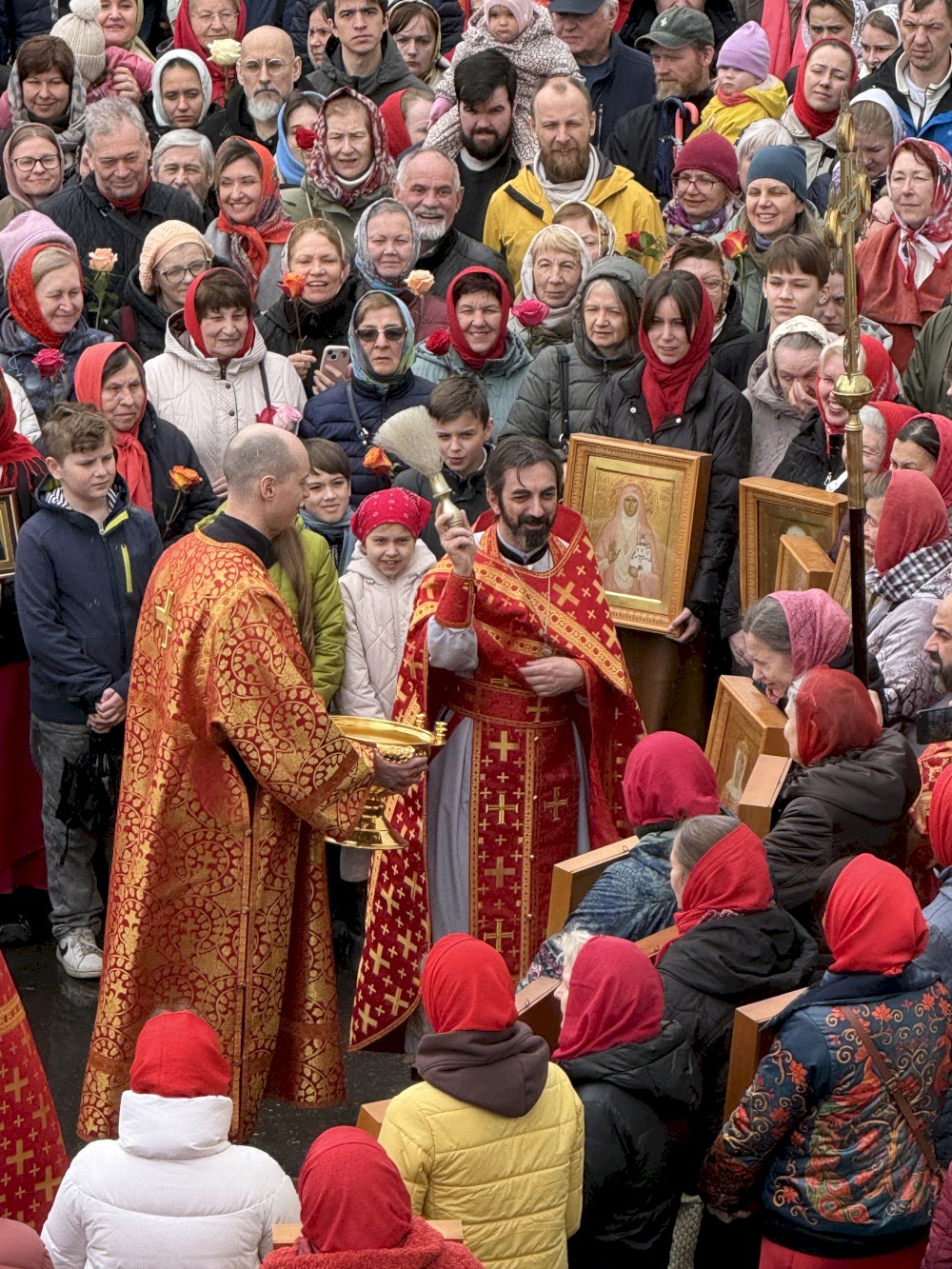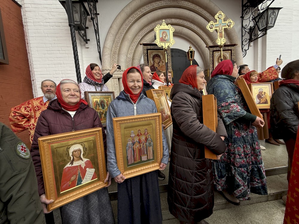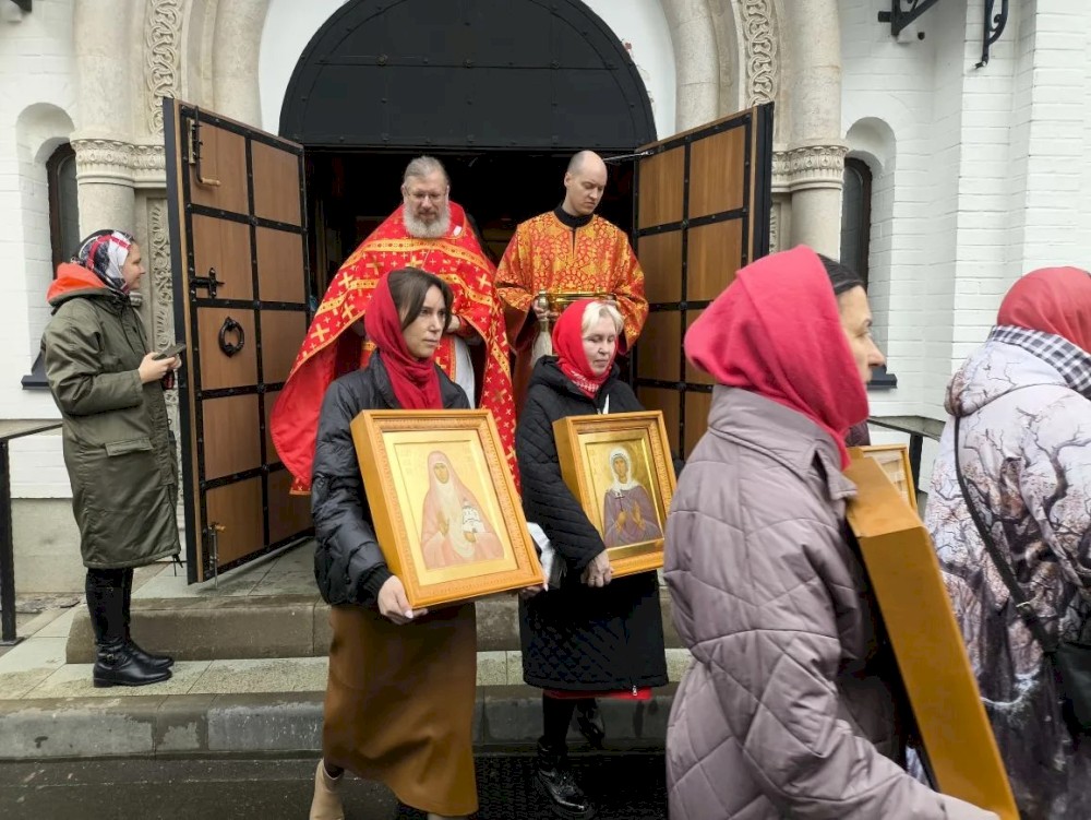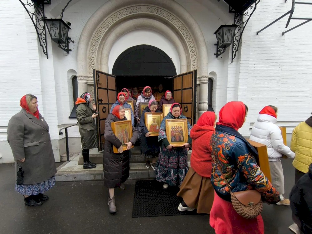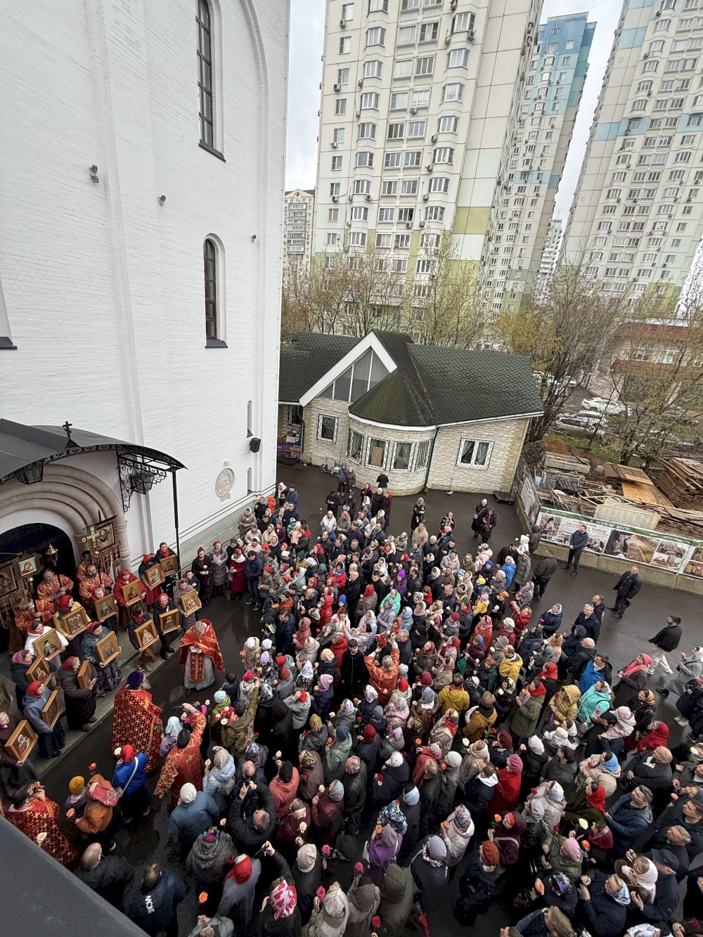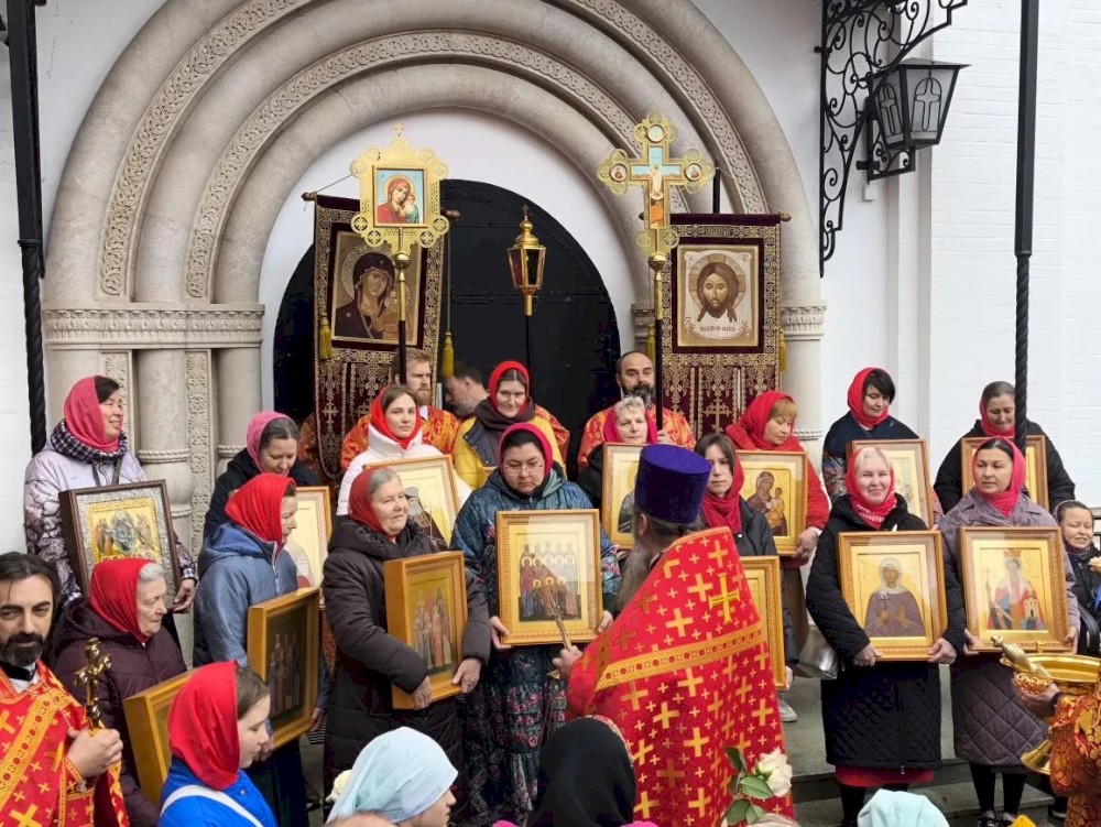 В завершение под сопровождение праздничного колокольного звона состоялся торжественный Крестный ход с участием прихожанок храма, которые несли в руках цветы и иконы с ликами святых жен.