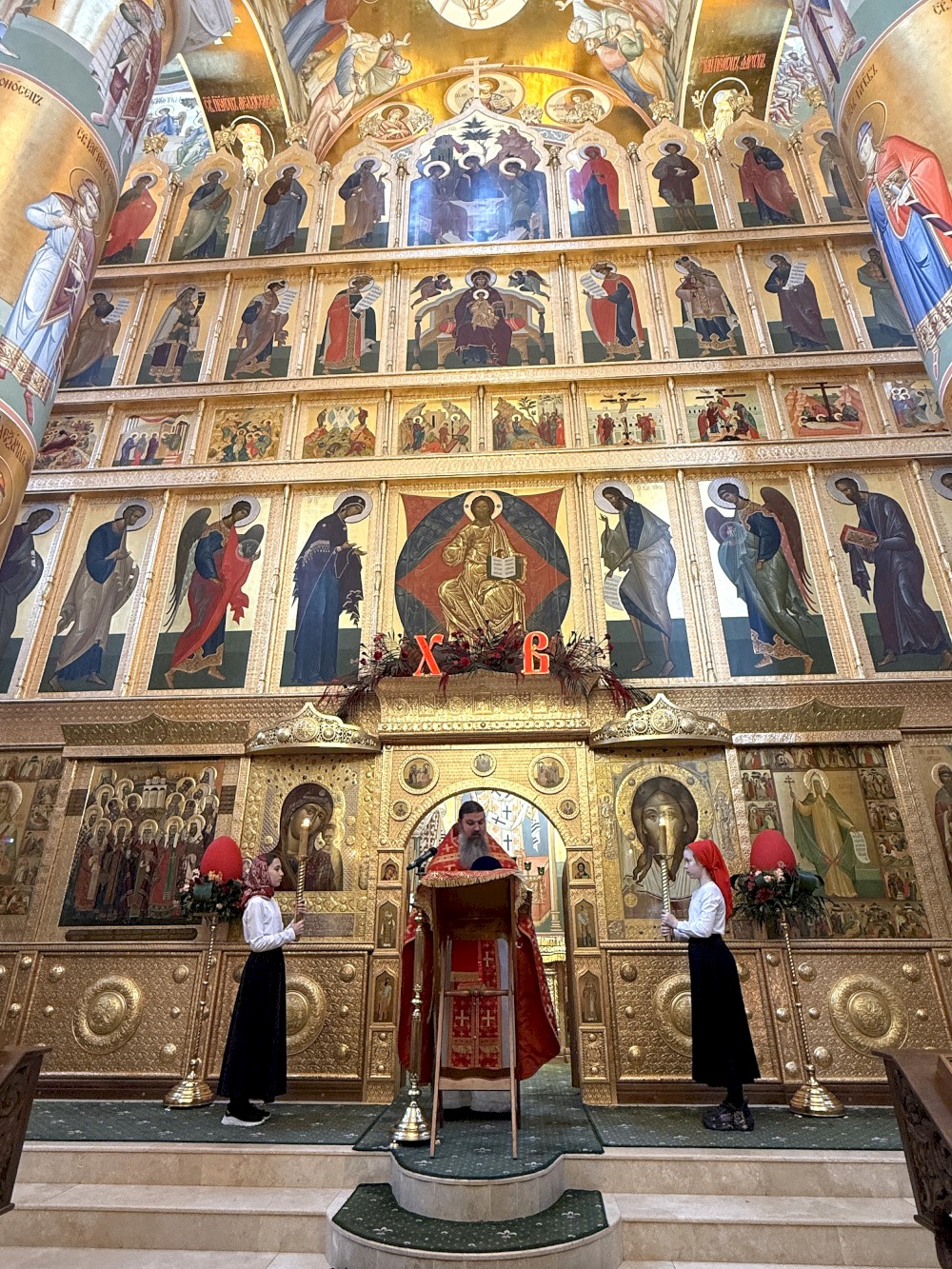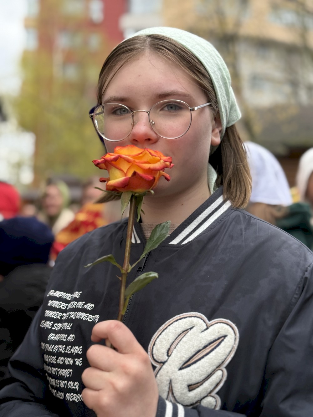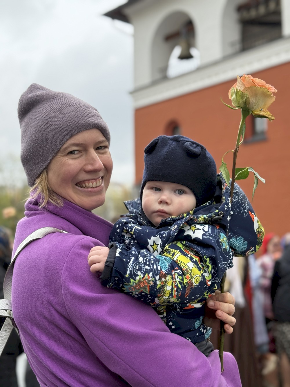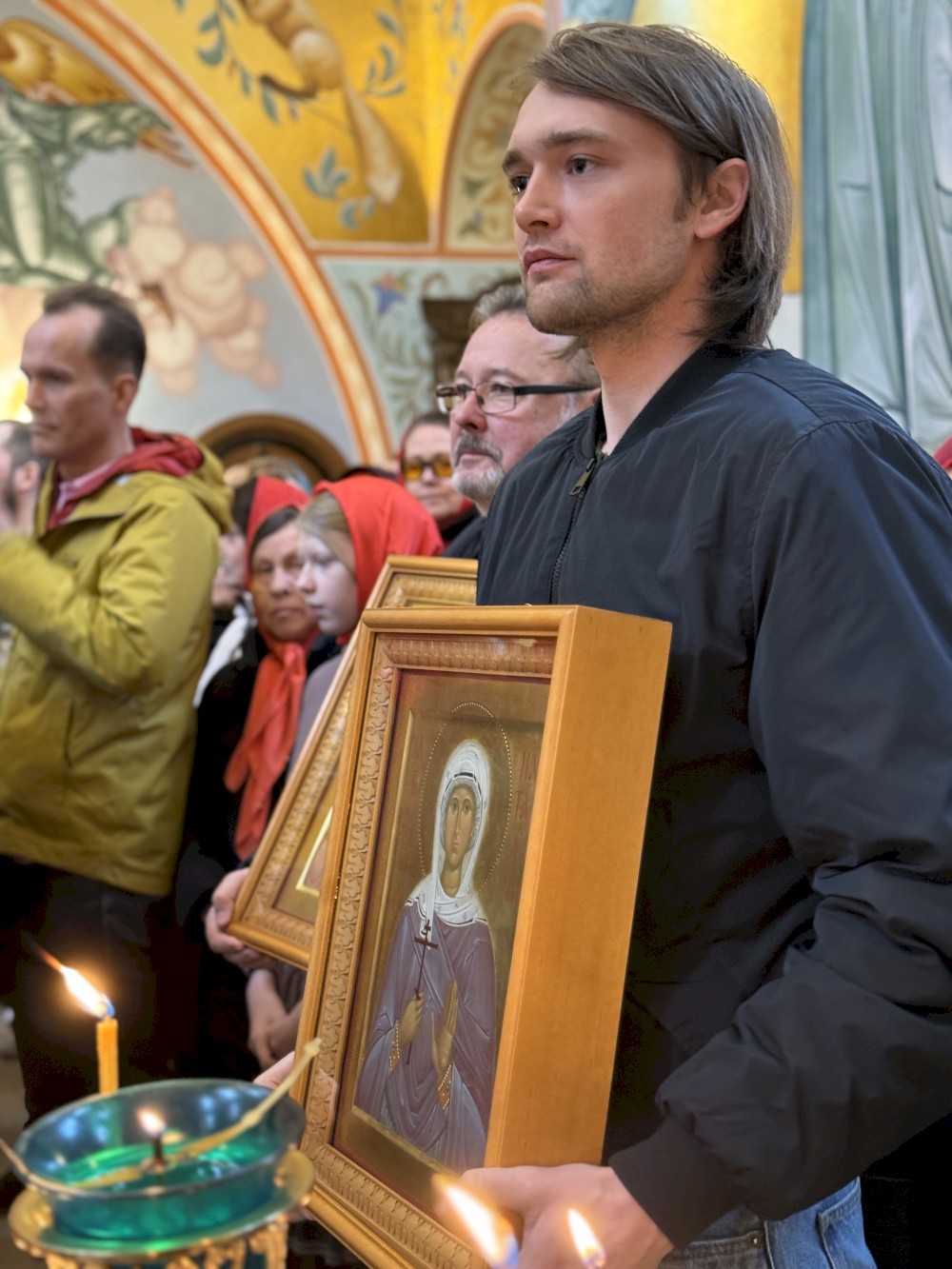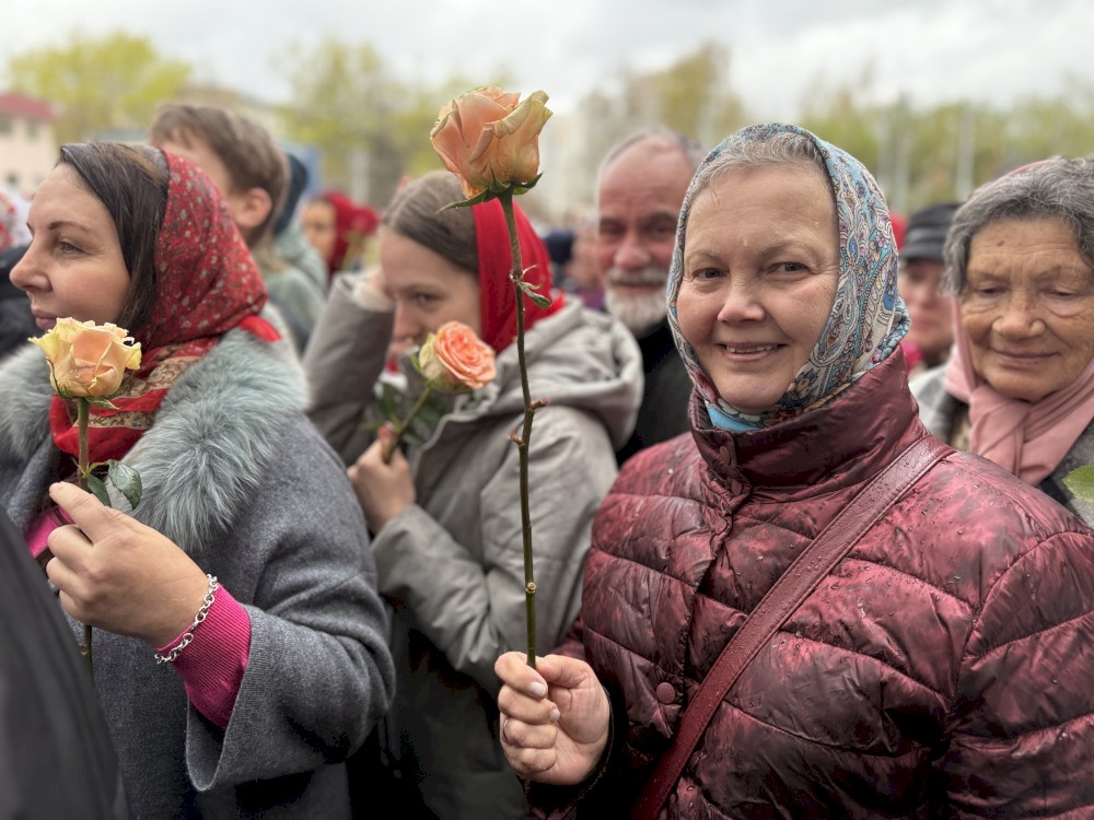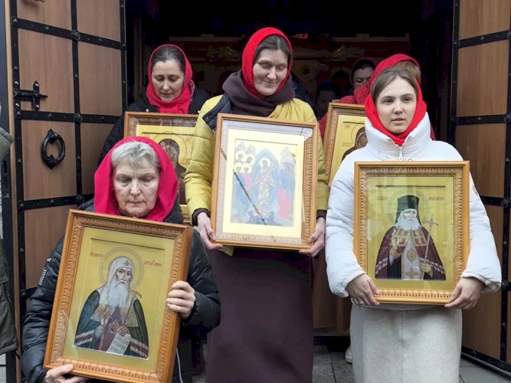В завершение под сопровождение праздничного колокольного звона состоялся торжественный Крестный ход с участием прихожанок храма, которые несли в руках цветы и иконы с ликами святых жен.