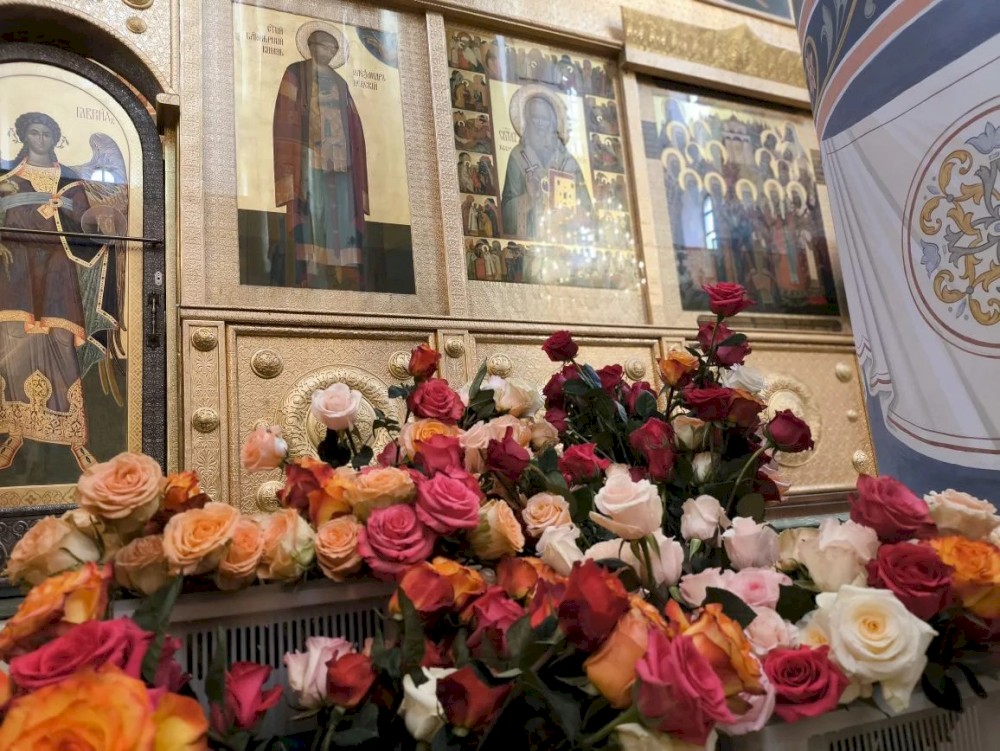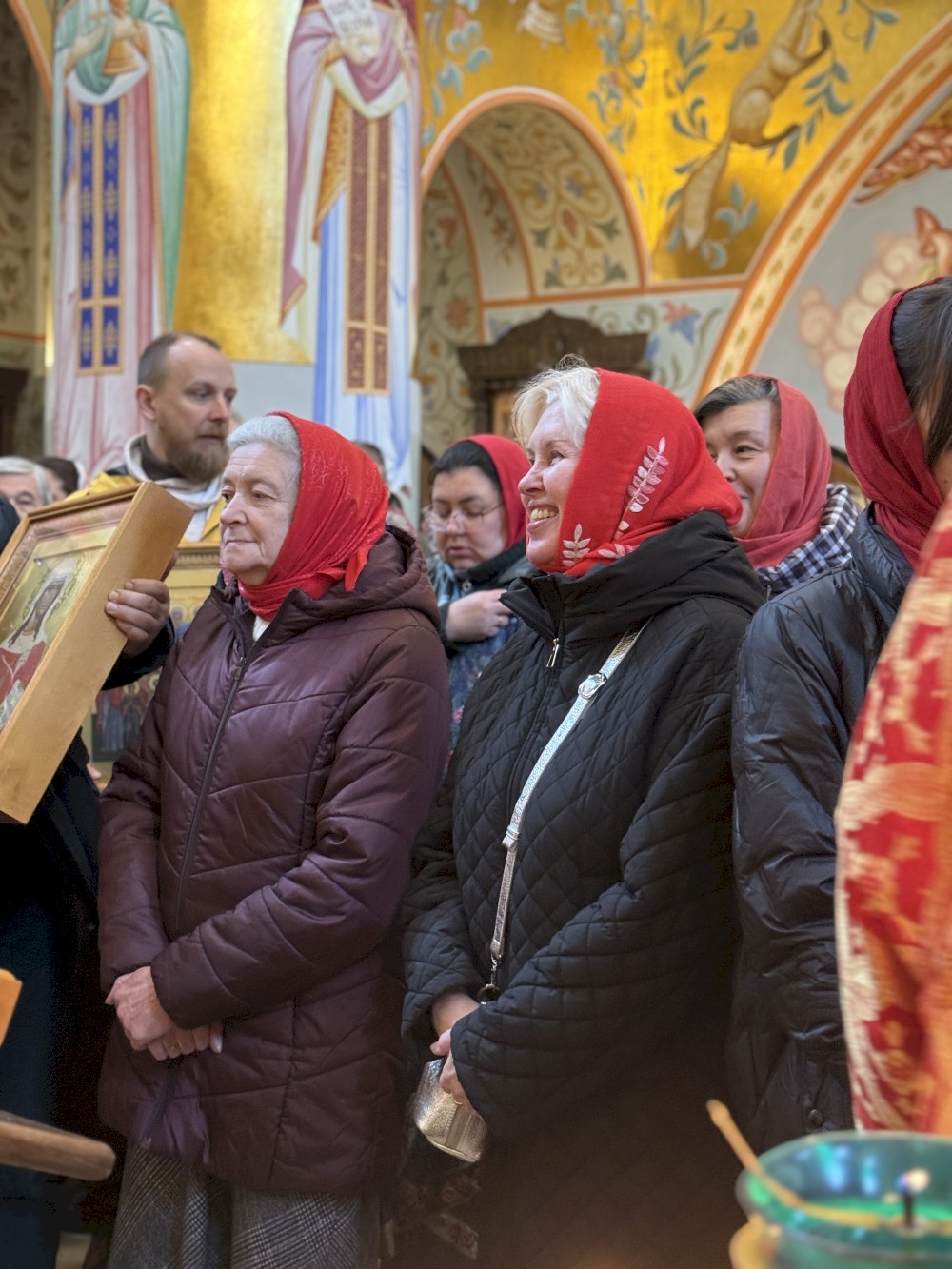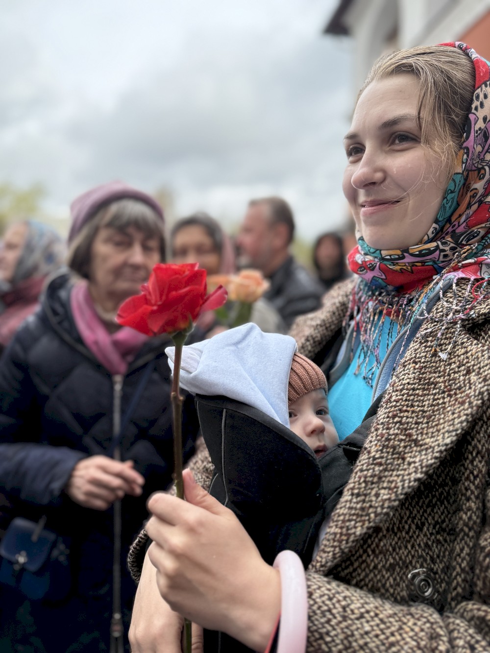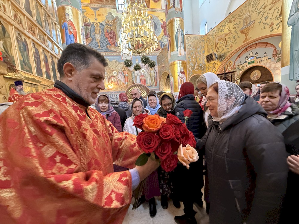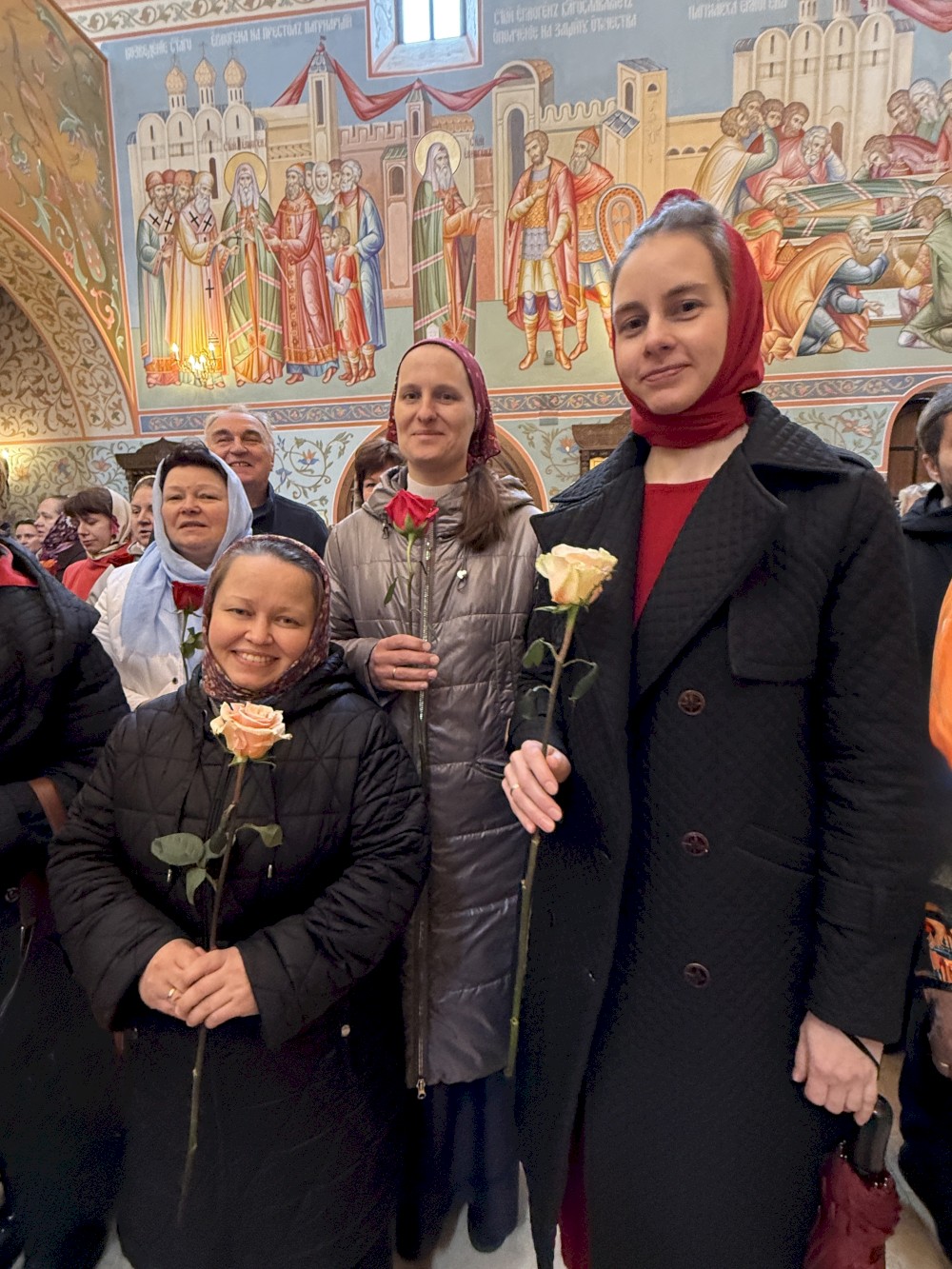 По окончании Божественной Литургии иерей Иоанн обратился к прихожанам с проповедью, в которой отметил особое значение женщины в деле служения Церкви. Далее настоятель поздравил всех пришедших женщин с праздником, после чего состоялось вручение цветов - по доброй традиции специально к празднику для всей женской части прихода были подготовлены прекрасные благоухающие розы.