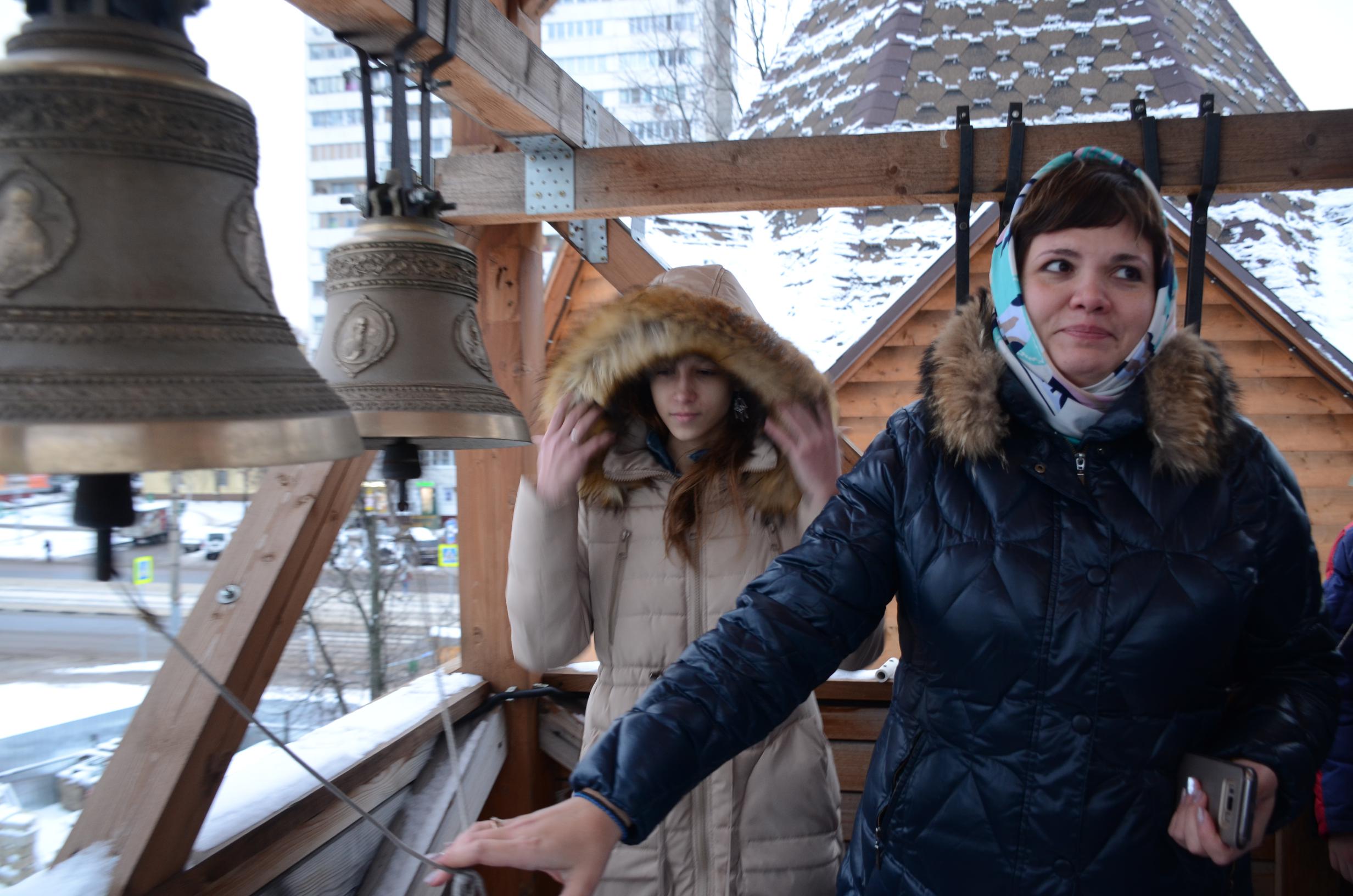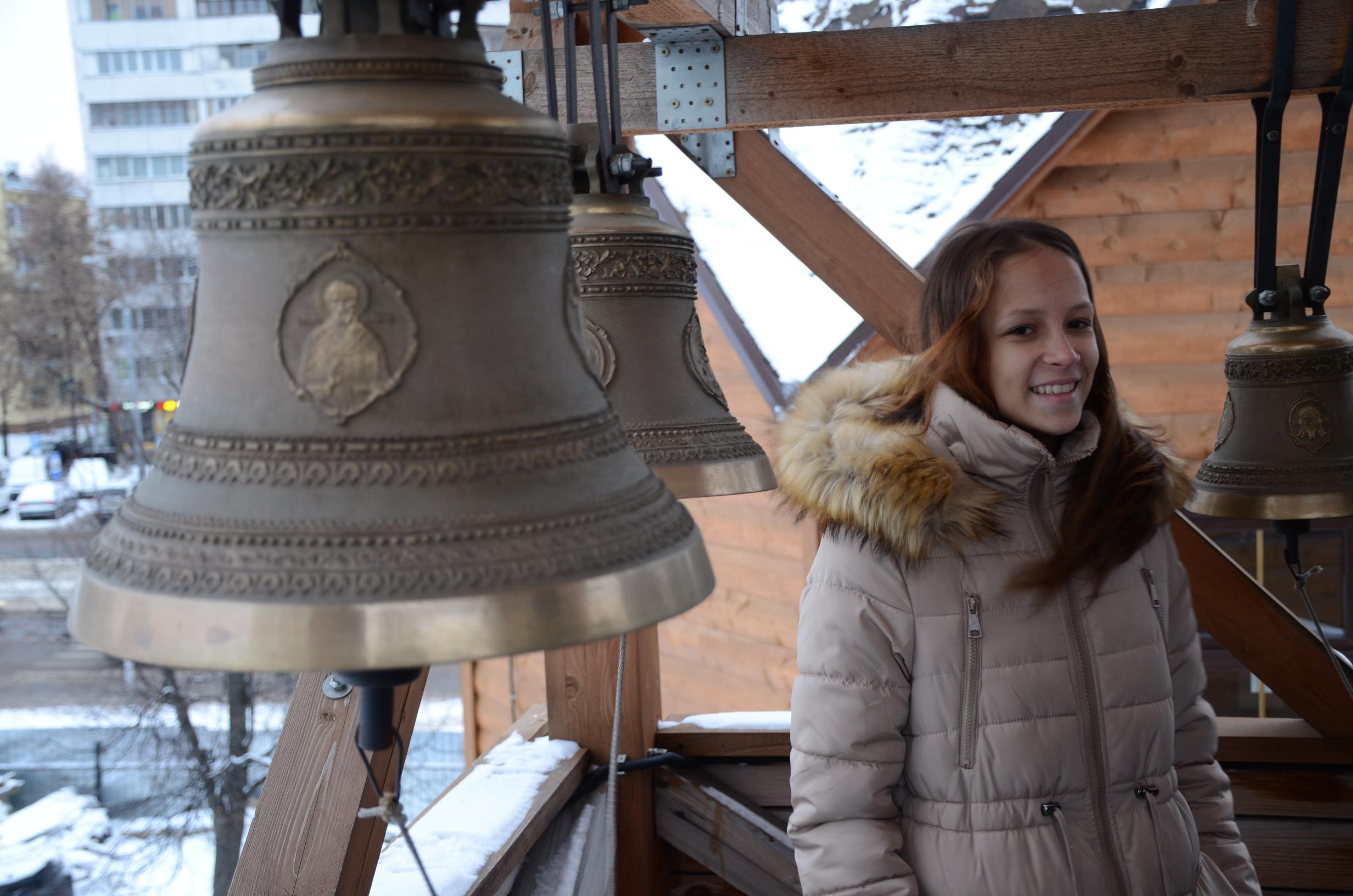 В завершении беседы в храме ребята вместе со священником поднялись на колокольню, и несмотря на сильный ветер, совсем близко познакомились с колоколами. Иерей Иоанн рассказал о значении колоколов и их составляющих, и позволил детям сделать собственный первый звон.
