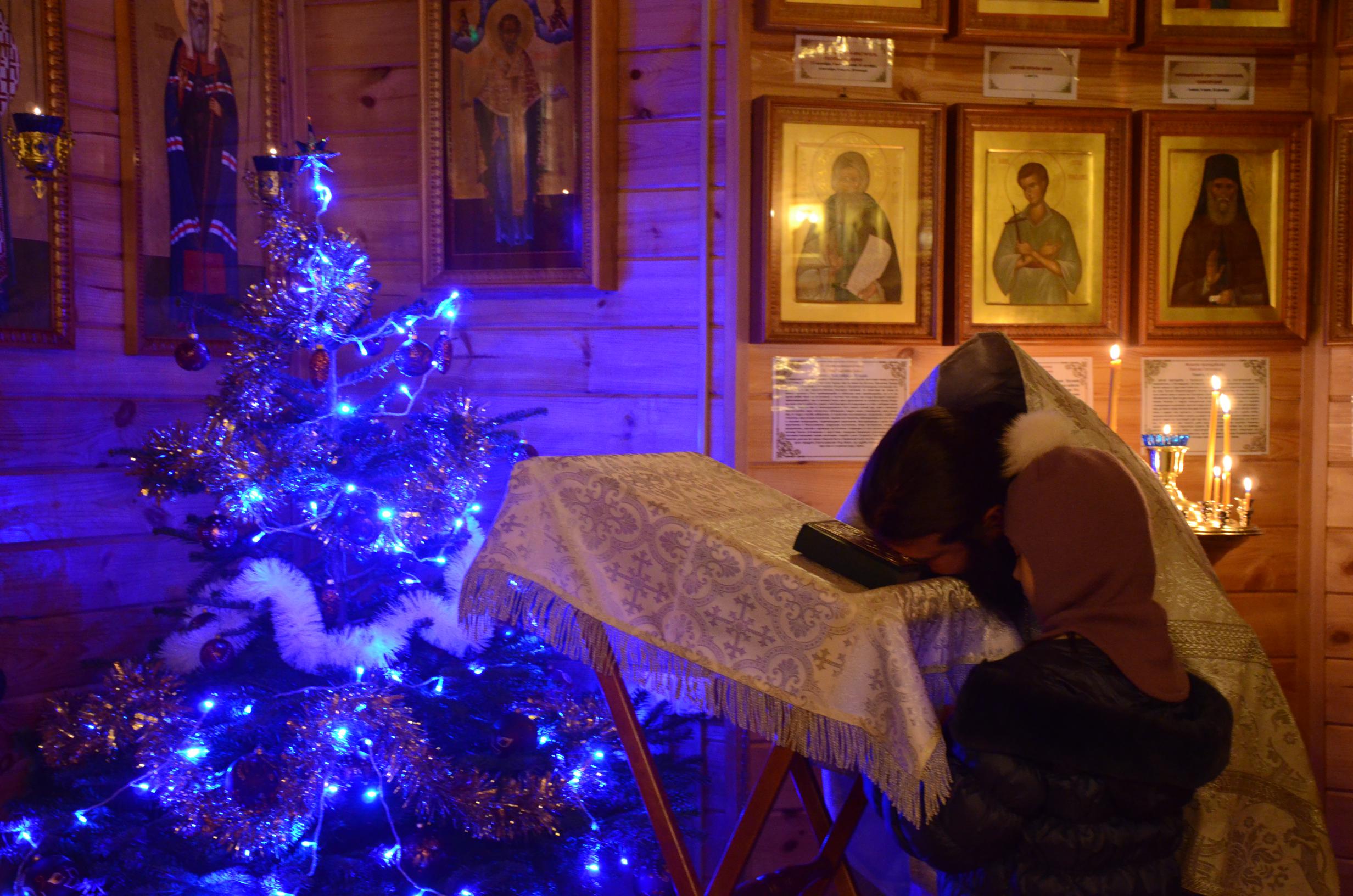 Патриарха Ермогена отслужены праздничные богослужения - Божественная Литургия и Великая Вечерня праздника Рождества Христова, совершил которые настоятель храма иерей Иоанн Омелянчук.